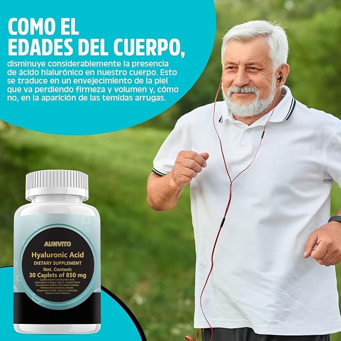 2025 New Hyaluronic Acid 30 Caplets Supplements, 850mg Hyaluronic Acid - Advanced Joint Support with Hydrolyzed Collagen, Turmeric, Glu-cosamine, MSM, Vitamin C – 30 Caplets(2 Pack)