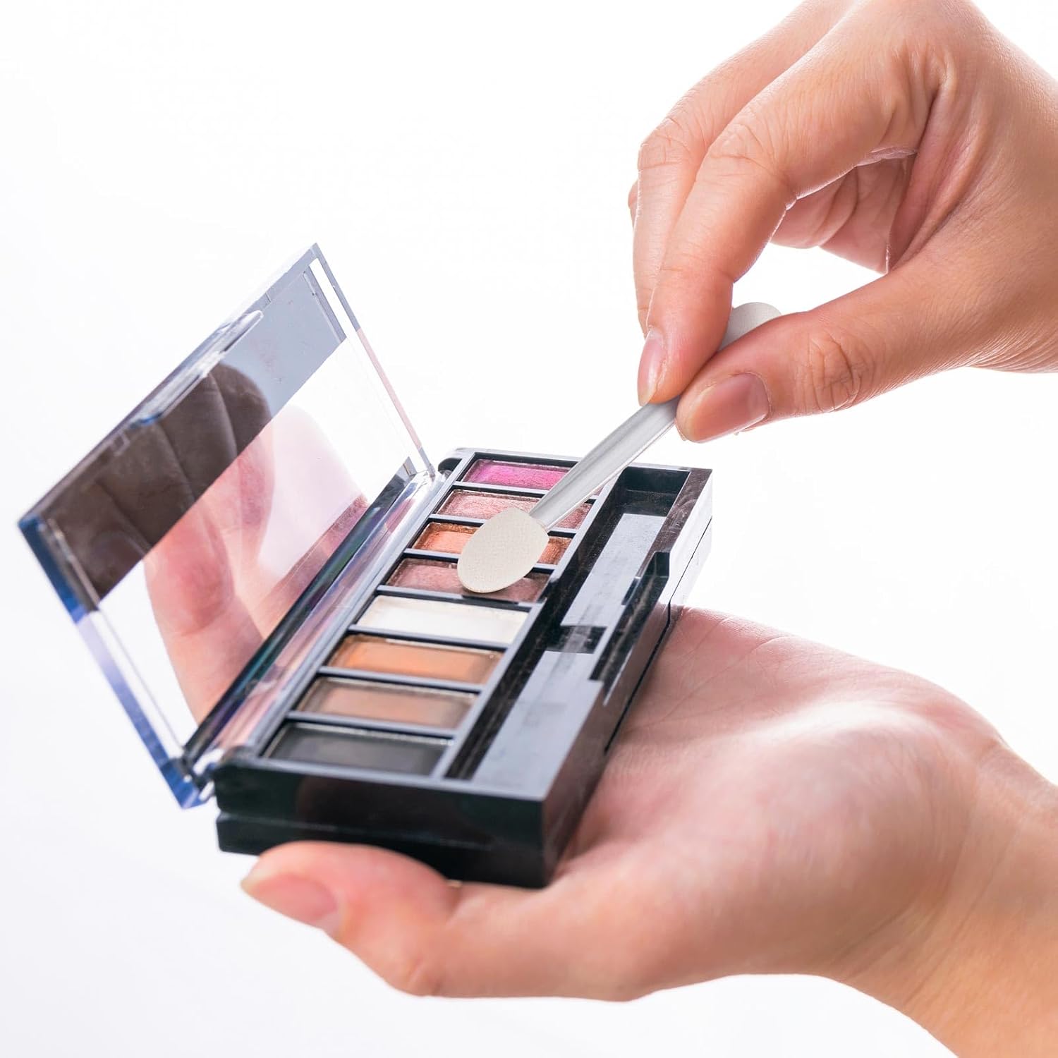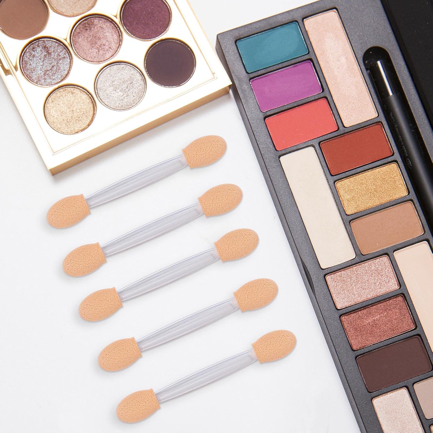 150 Eye Shadow Applicator Disposable Foam Makeup Brush Sponge Tipped Oval Eyeshadow Applicators Dual Sides with Container, Clear