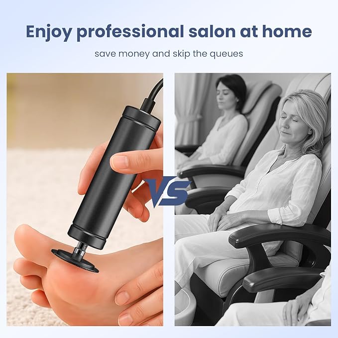 - 【Plug-In Design】: This electric foot file is designed to be used with a power cord. Compared to cordless or rechargeable foot file, this type requires a constant power supply, making it suitable for extended usage without worrying about battery life.
