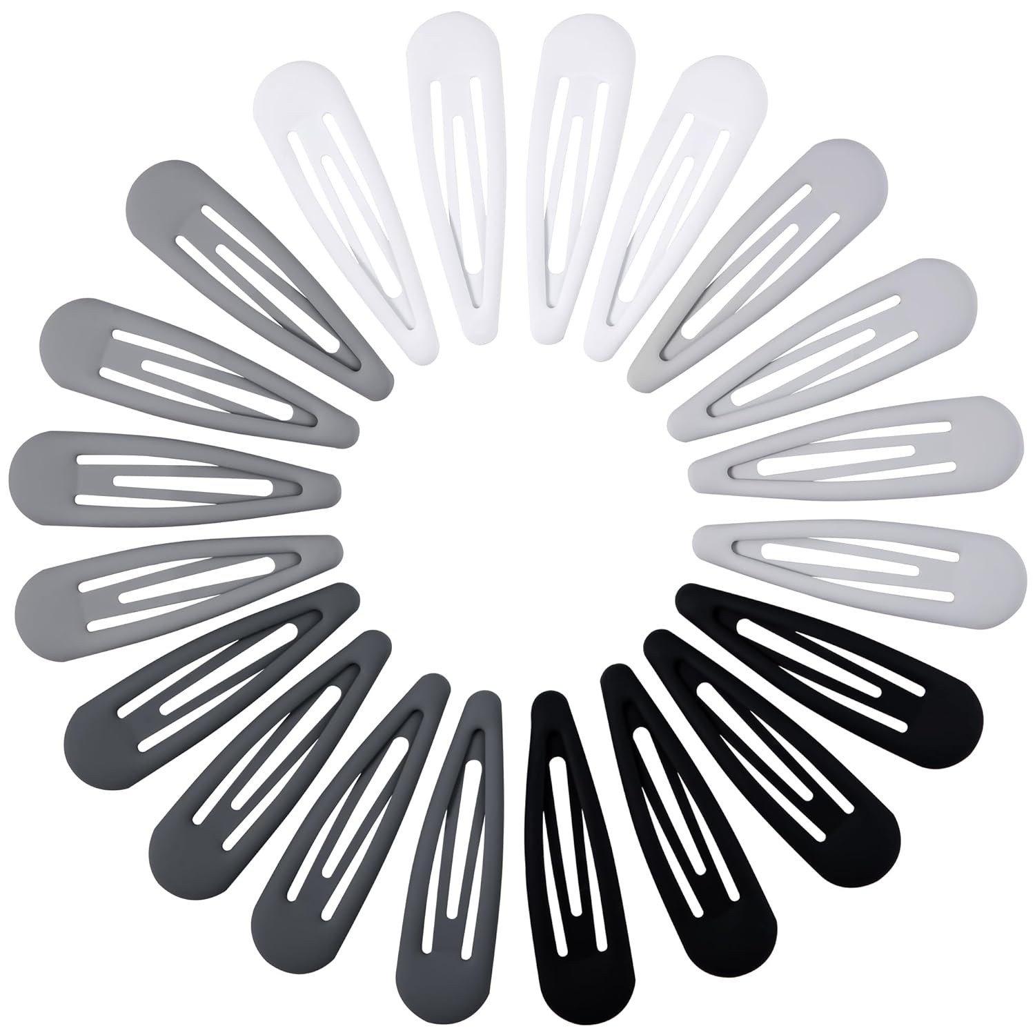 Small Hair Barrettes For Women No Slips Metal Snap Clips For Thin And Fine Hair,Matte Black Gray White,20 PCS,1.97 x 0.5 Inch.