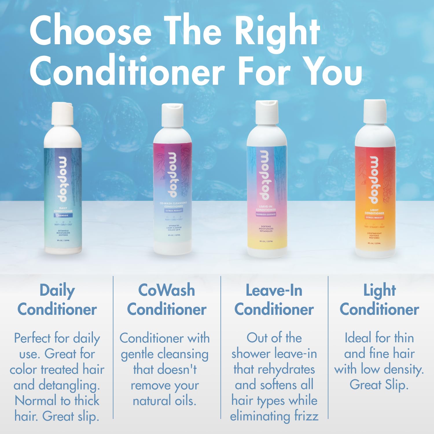 - RESTORE MOISTURE: Moptop’s curly and wavy hair conditioner is gentle for daily use and helps tame frizz while rehydrating and softening your hair from root to tip. Our hydrating conditioner has you covered whether you need dyed, straight, wavy, fine, coily, or curly hair care.