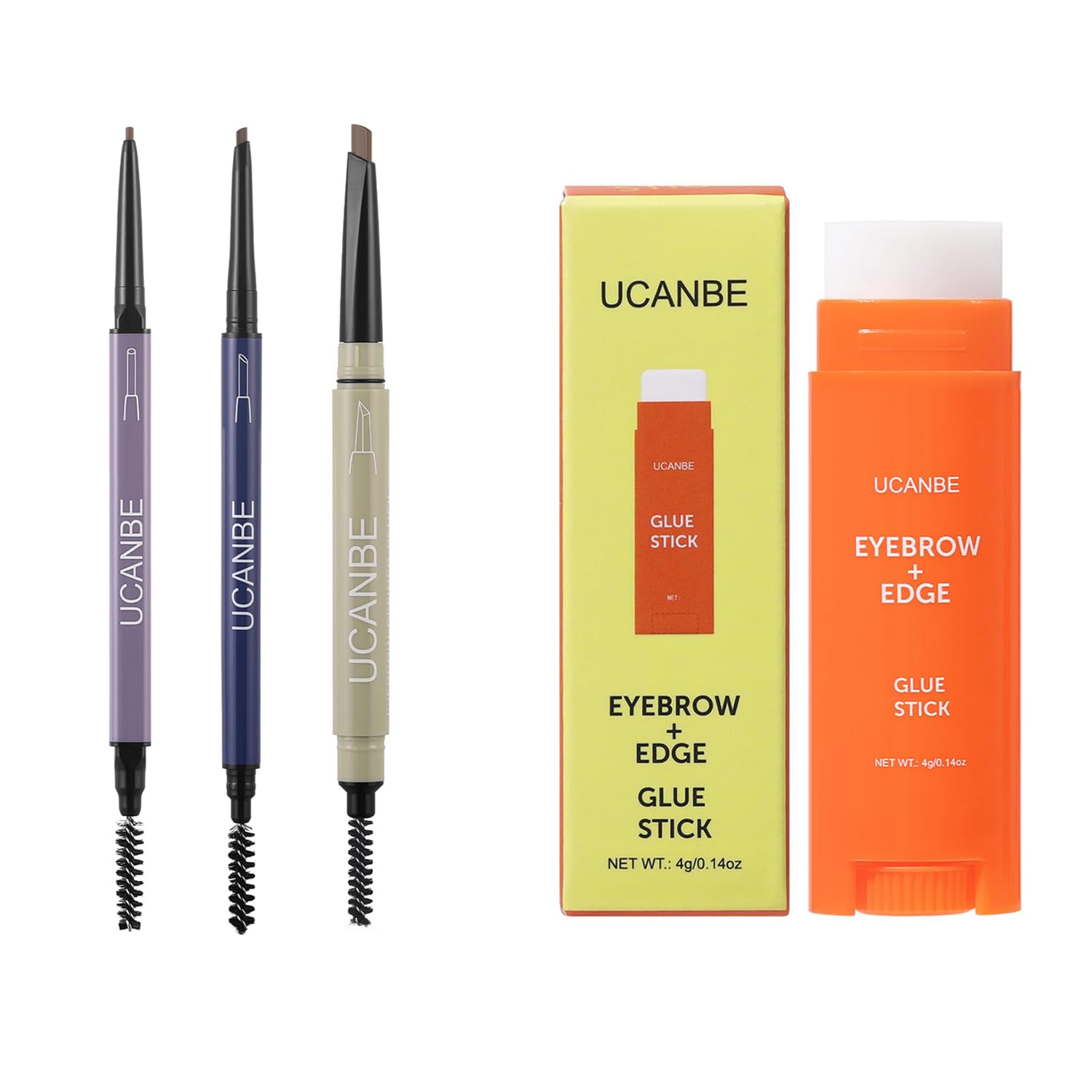 - ● Complete Brow & Edge Styling Solution: This 2-in-1 set includes a waterproof Eyebrow & Edge Glue Stick for taming baby hairs and sculpting brows, plus 3 eyebrow pencils with different tips to define, fill, and shape brows with precision—from natural to bold looks.