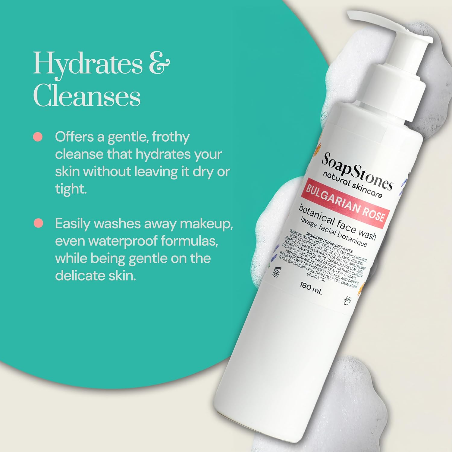 - INDULGE IN A LUXURIOUS ROSE FACIAL WASH – Cleanse without stripping! This bulgarian rose facial wash is infused with rose oil cleansing, chamomile, and green tea to remove dirt, oil, and makeup while nourishing your skin. A hydrating wash that refreshes and purifies, making it ideal for daily use.
