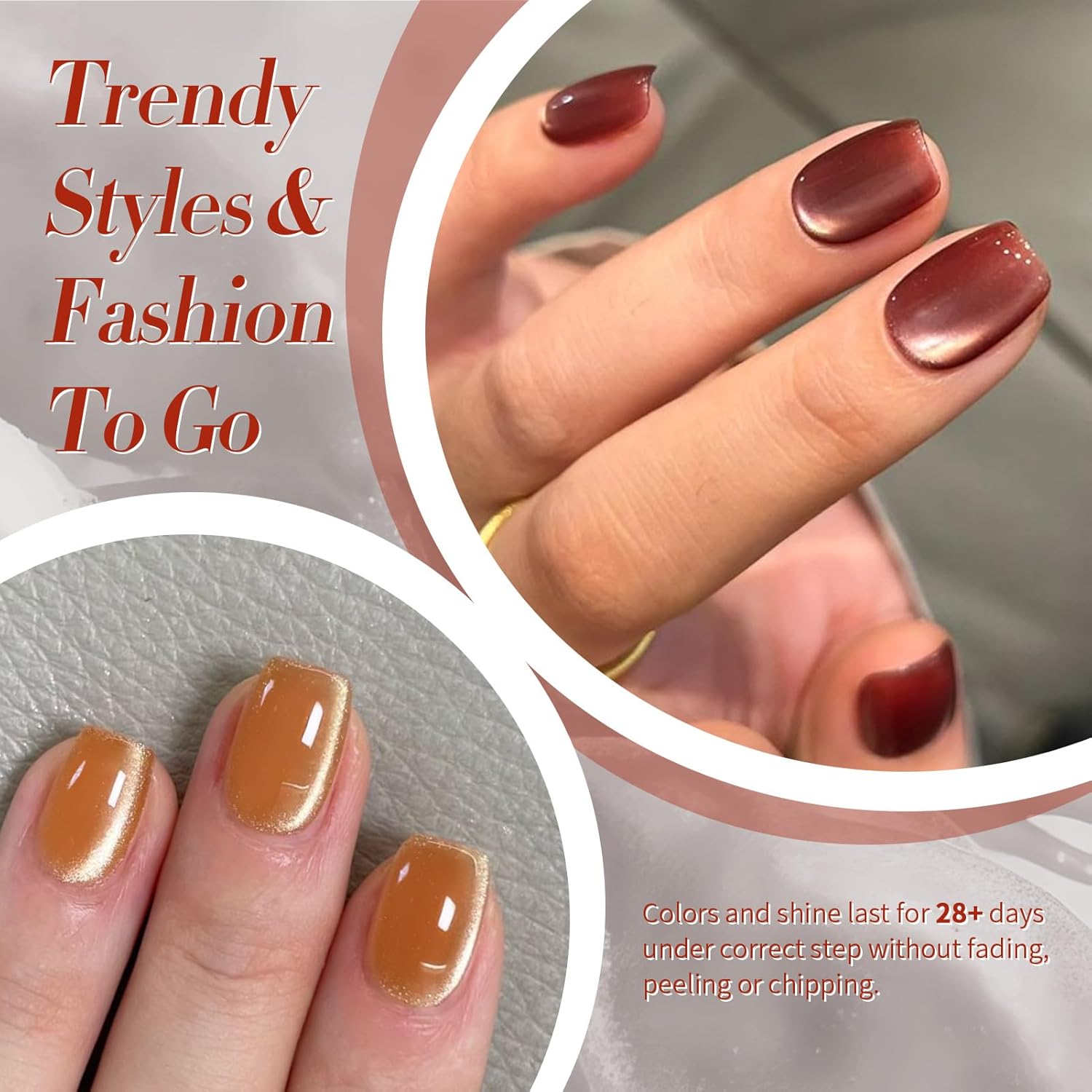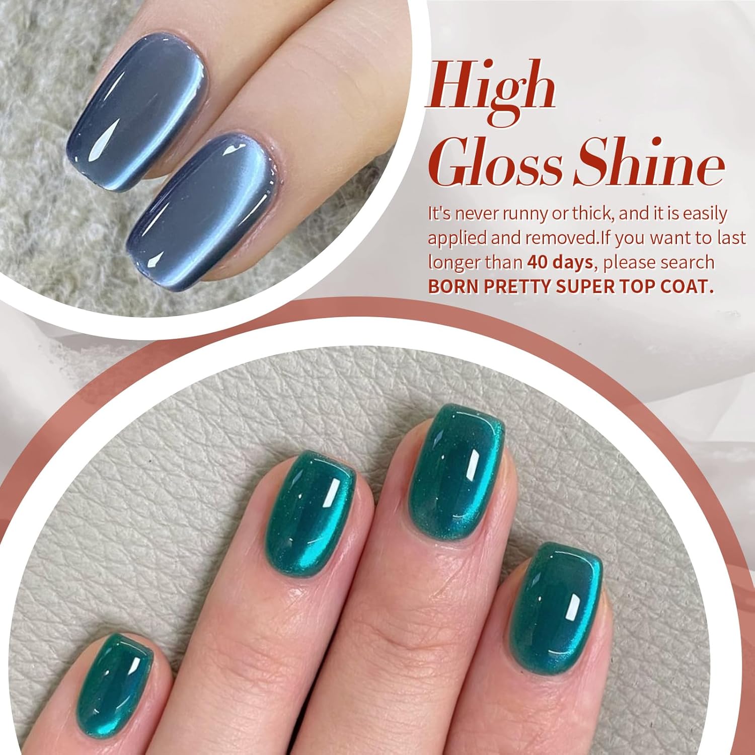 - PACKAGE CONTENTS:6 Bottles jelly crystal cat magnetic gel nail polish gift set .Transparent jelly glass bead texture, super amount of magnetic powder good suction is not easy to run, moist texture, delicate cat's magnetic eye luster, very suitable for spring and summer.