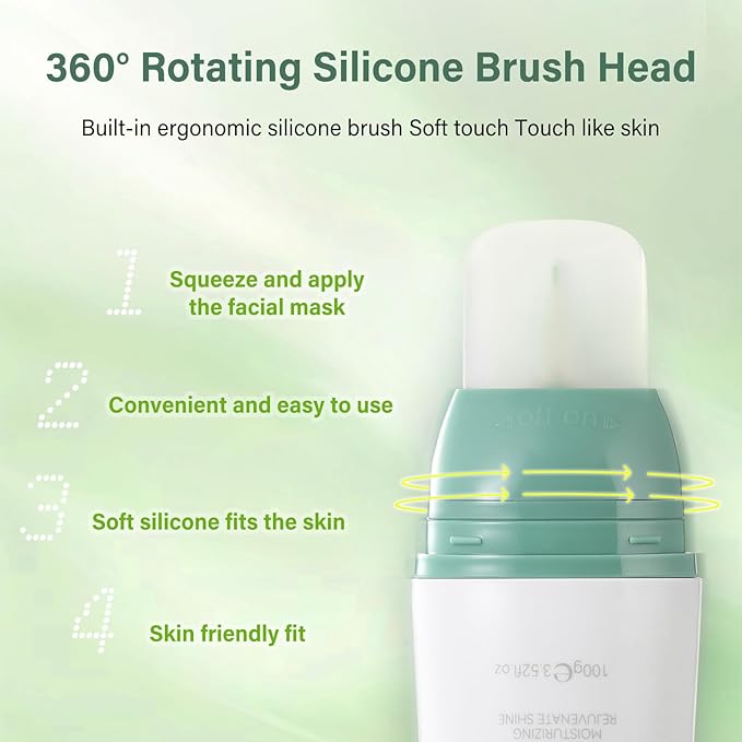 - Built-in 360° Rotating Silicone Brush Head - The ergonomic silicone brush rotates smoothly for effortless application. Its ultra-soft silicone massage the skin to boost circulation, enhance product absorption, and ensure a spa-like experience at home.