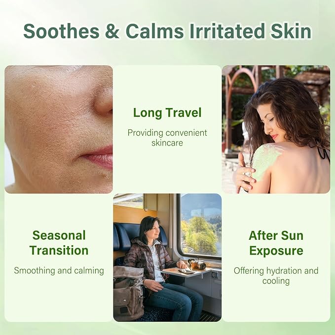 - Soothes & Calms Down Skin - Specially formulated to alleviate discomfort caused by allergies, environmental stressors. It instantly cools sunburned skin, reduces redness, and restores a balanced, comfortable complexion.