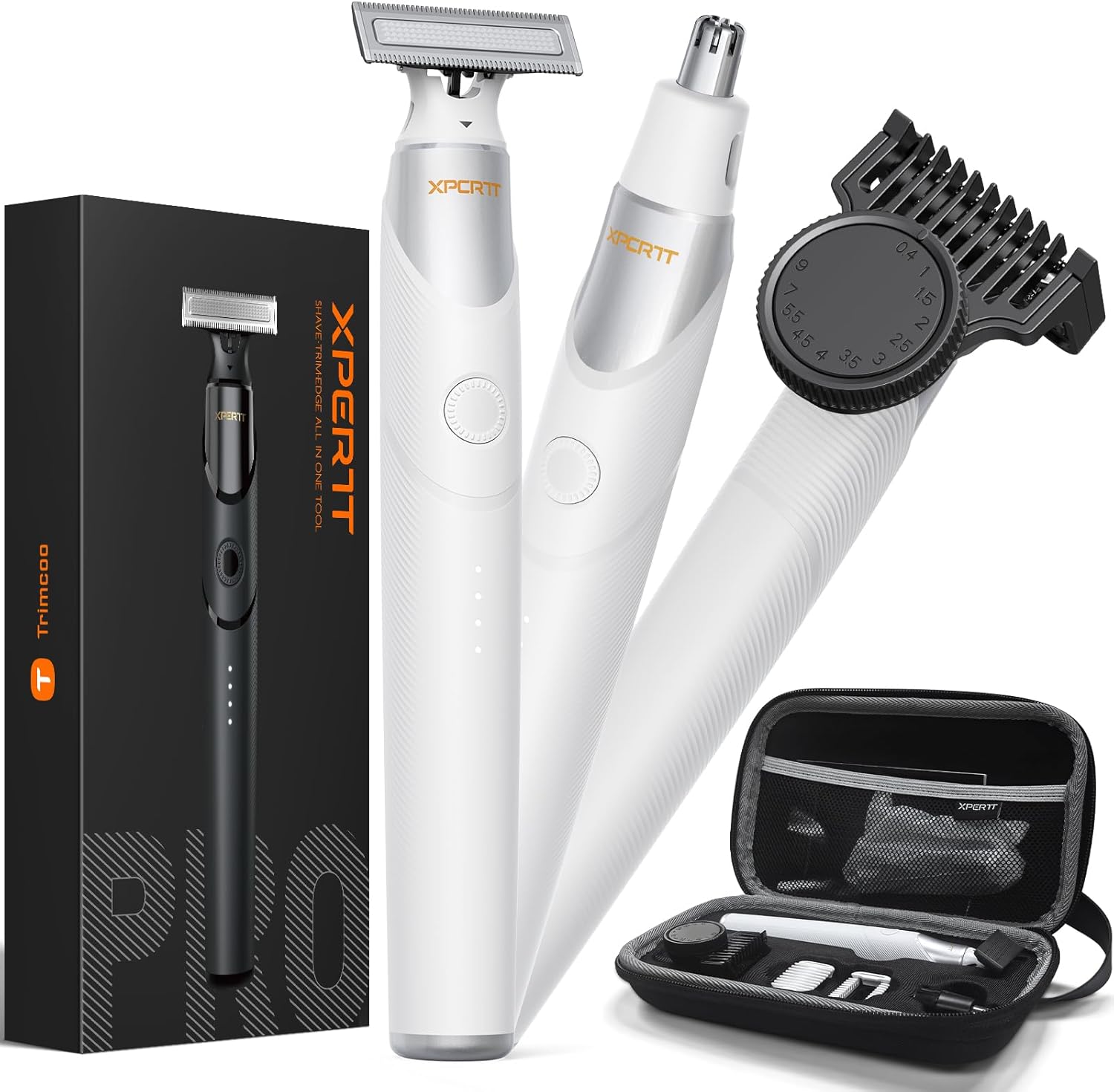 - 【All - in - One Grooming】The Trimcoo Beard & Nose Hair Trimmer Kit (PACK version) offers unbeatable value with its exclusive bundle. Alongside the high - performance trimmer, you get an additional magnetic nose hair head for effortless nasal hair trimming, a 12 - in - 1 rotating comb for precise beard styling, and a handy storage bag to keep all your grooming essentials organized. No more purchasing accessories separately—everything you need for head - to - toe grooming is in one package.