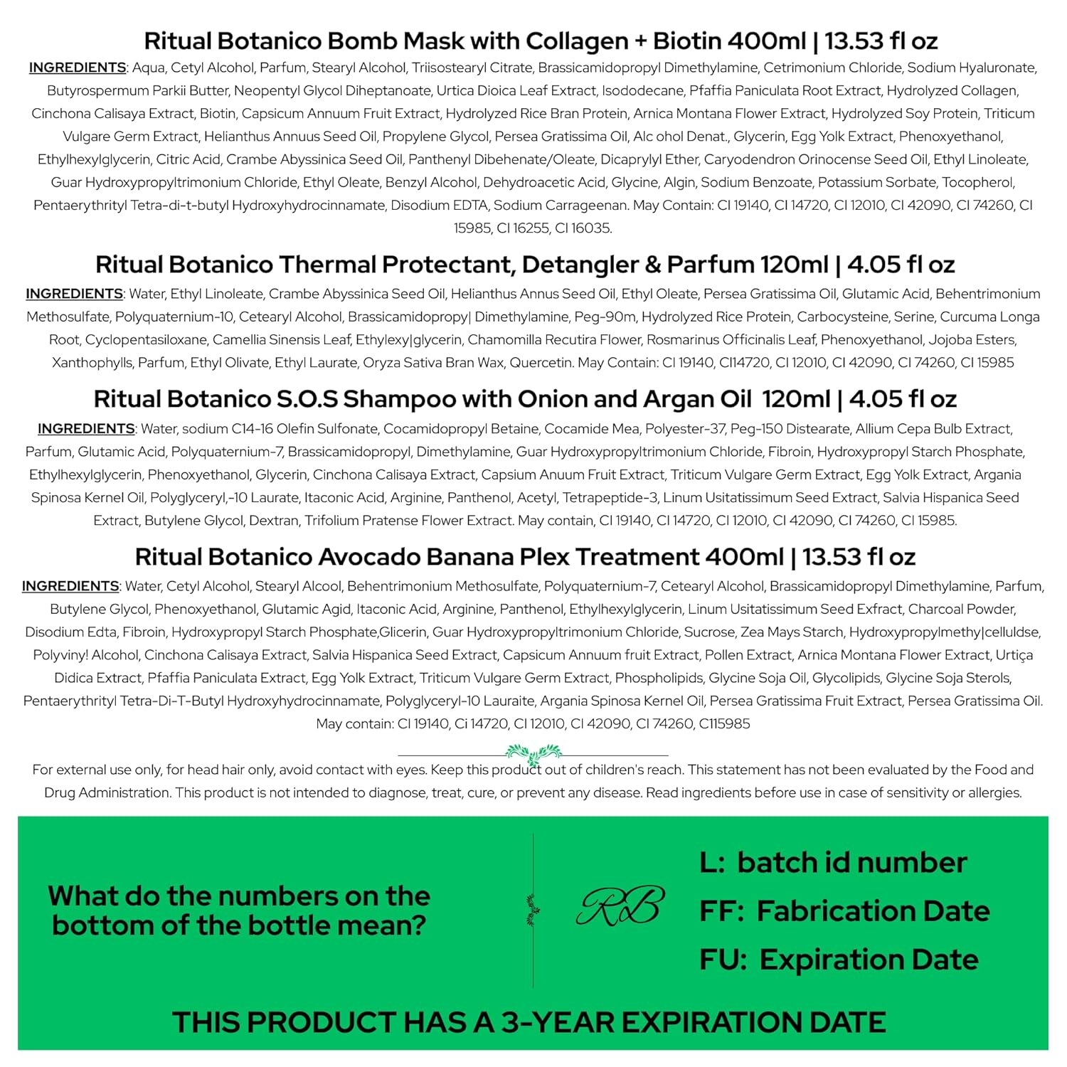 - Includes: Termoprotector | Collagen + Biotin Bomb Mask | Onion SOS Shampoo | Avocado Tratamiento Intensivo Plex Conditioner