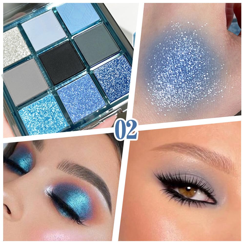- 1. ๐จ 9 Cool-Tone Eyeshadow Colors for Every Look This eyeshadow palette features 9 trendy and wearable shades: White glitter, Light blue matte, Sky blue matte, Silver-gray matte, Black matte, Gray-blue matte, Bright blue glitter, Light blue glitter, and Blue-gray glitter. From soft daytime glam to bold party looks, this is your go-to eye makeup palette.