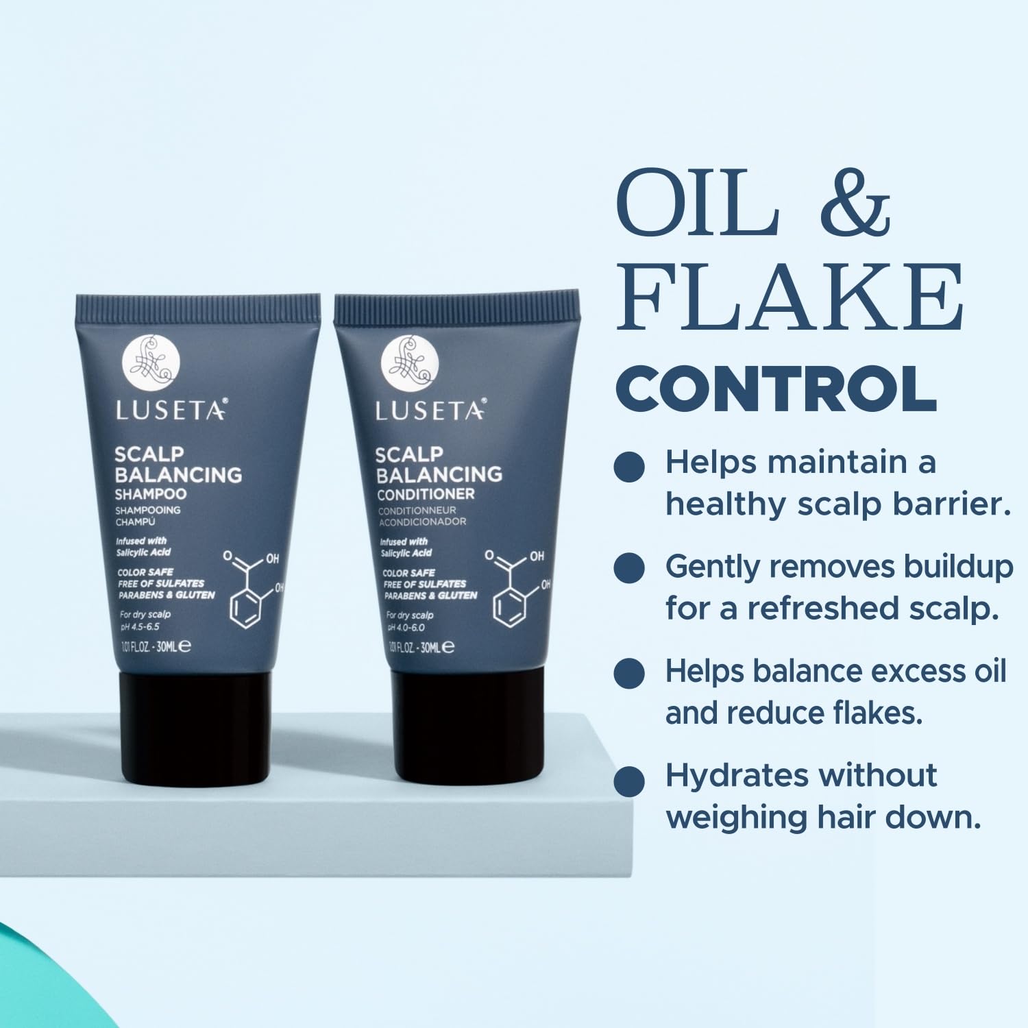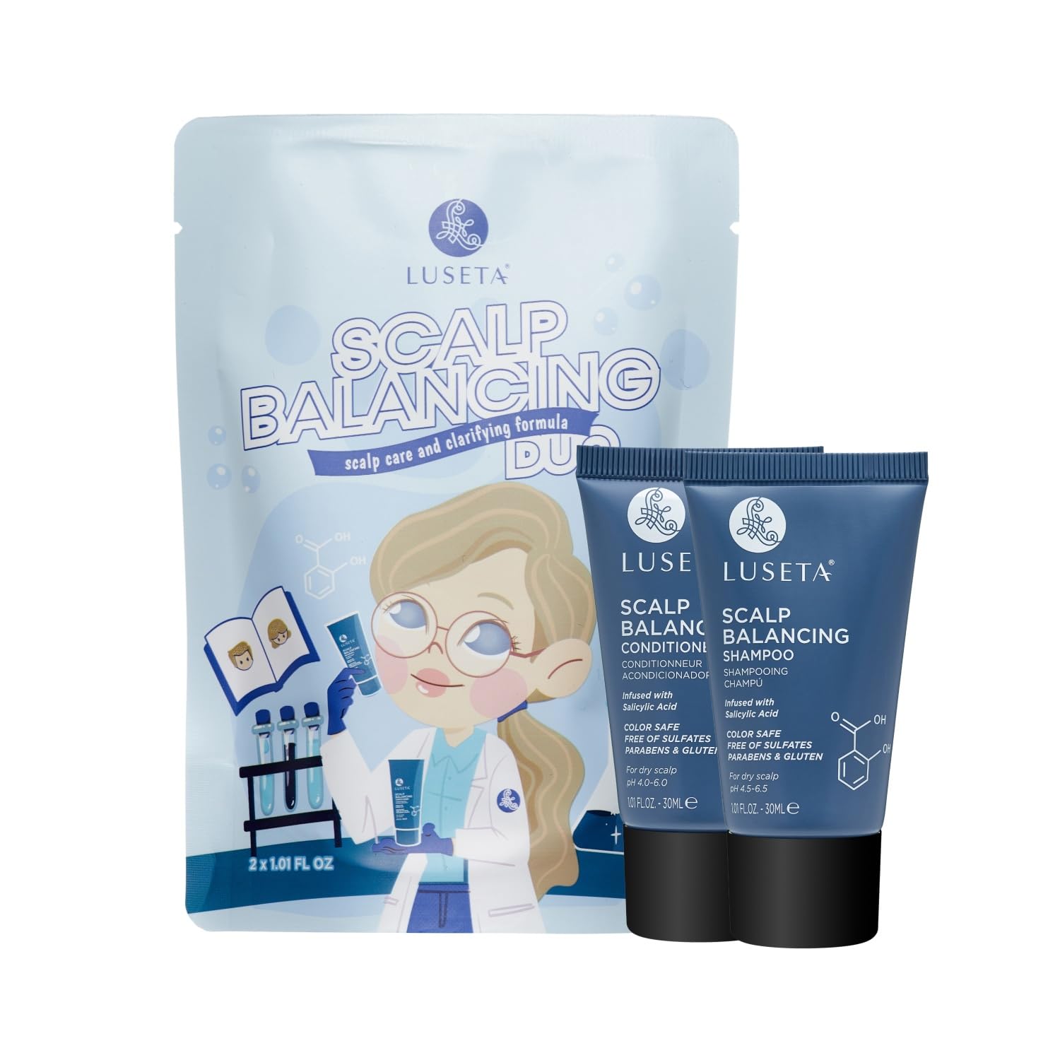 Luseta Scalp-Balancing Shampoo and Conditioner Set for Women, Reducing Build-up with Salicylic Acid, Anti-Dandruff Shampoo for Men, Clarifying Shampoo for Refreshing, pH-Balanced, 2 x 1.01 Fl Oz