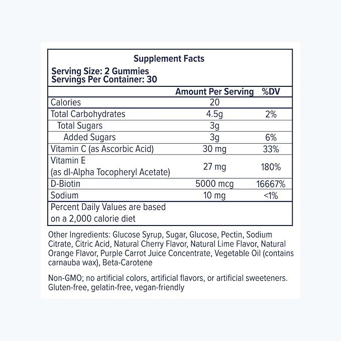eSalon Biotin Hair Gummies, Vegan Multivitamin, Cherry & Citrus Flavor, 60 Count, 30 Day Supply
