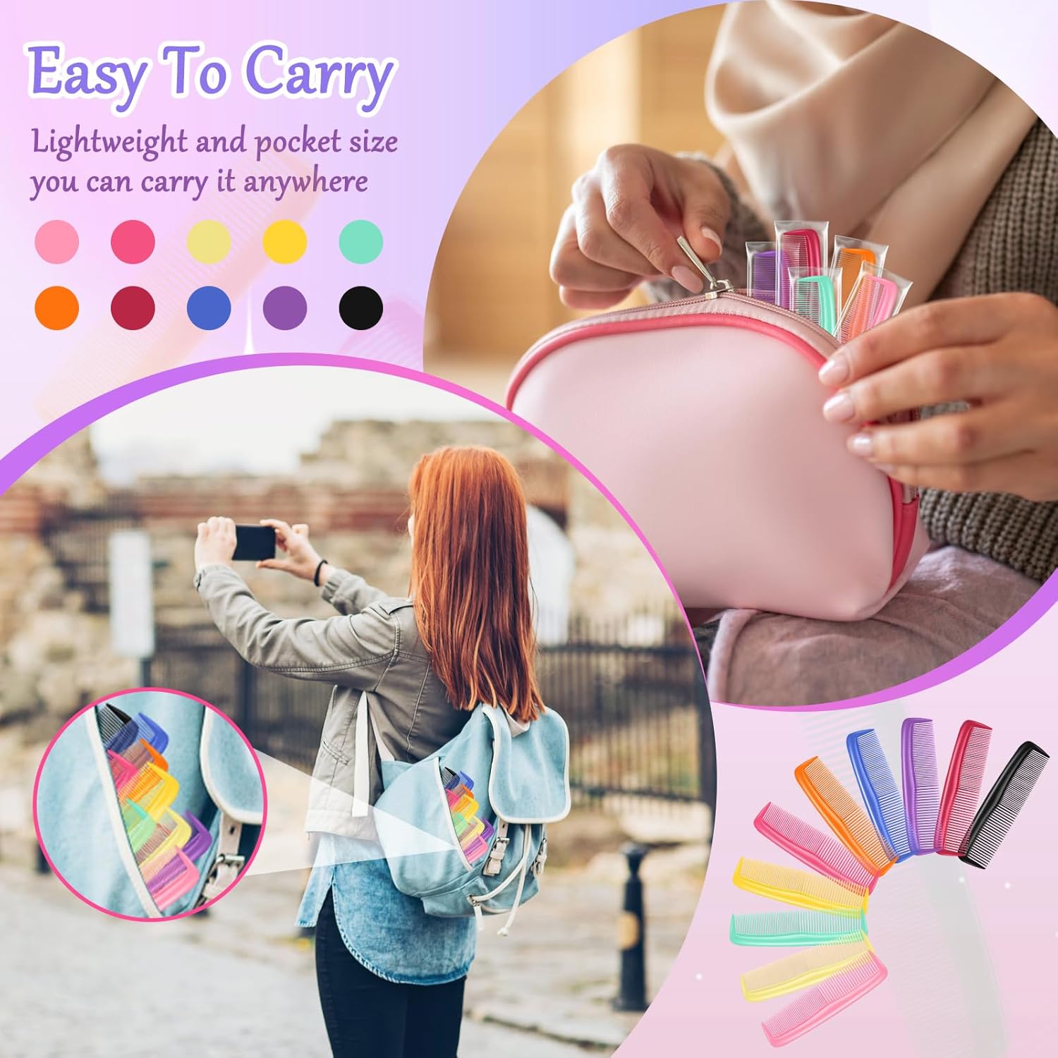 HOFASON 100 Pack Combs Bulk for Women Kids Homeless, Individually Wrapped Plastic Pocket Hair Combs Set Small Bulk Travel Combs for Styling, Homeless, Hotel, Shelter, Nursing Home, Charity, 10 Colors