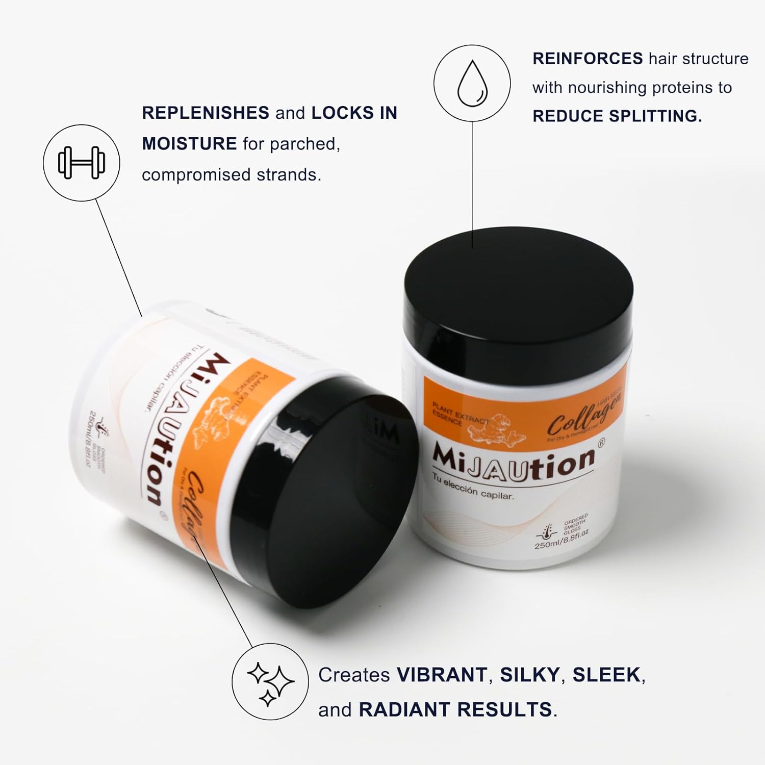 - Collagen Hair Mask: Our formula combines hydrolyzed keratin, shea butter, and botanical oils to rebuild structure while delivering intense moisture.