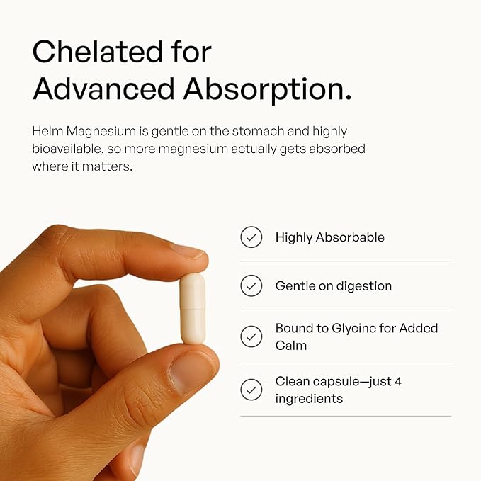 Helm Magnesium Glycinate 350mg – High Absorption Chelated Magnesium Supplement for Sleep, Calm, Stress, and Muscle Recovery – Non-GMO, Vegan, 90 Capsules