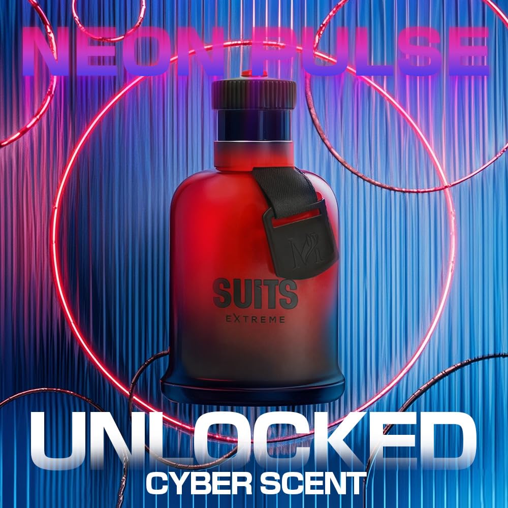 - Sensual, Masculine Scent: Featuring a wondrous blend of woody, spicy notes,Suits Extreme Cologne for men is a sensual, masculine fragrance that will appeal to magnetic, mysterious men who attract attention everywhere they go.