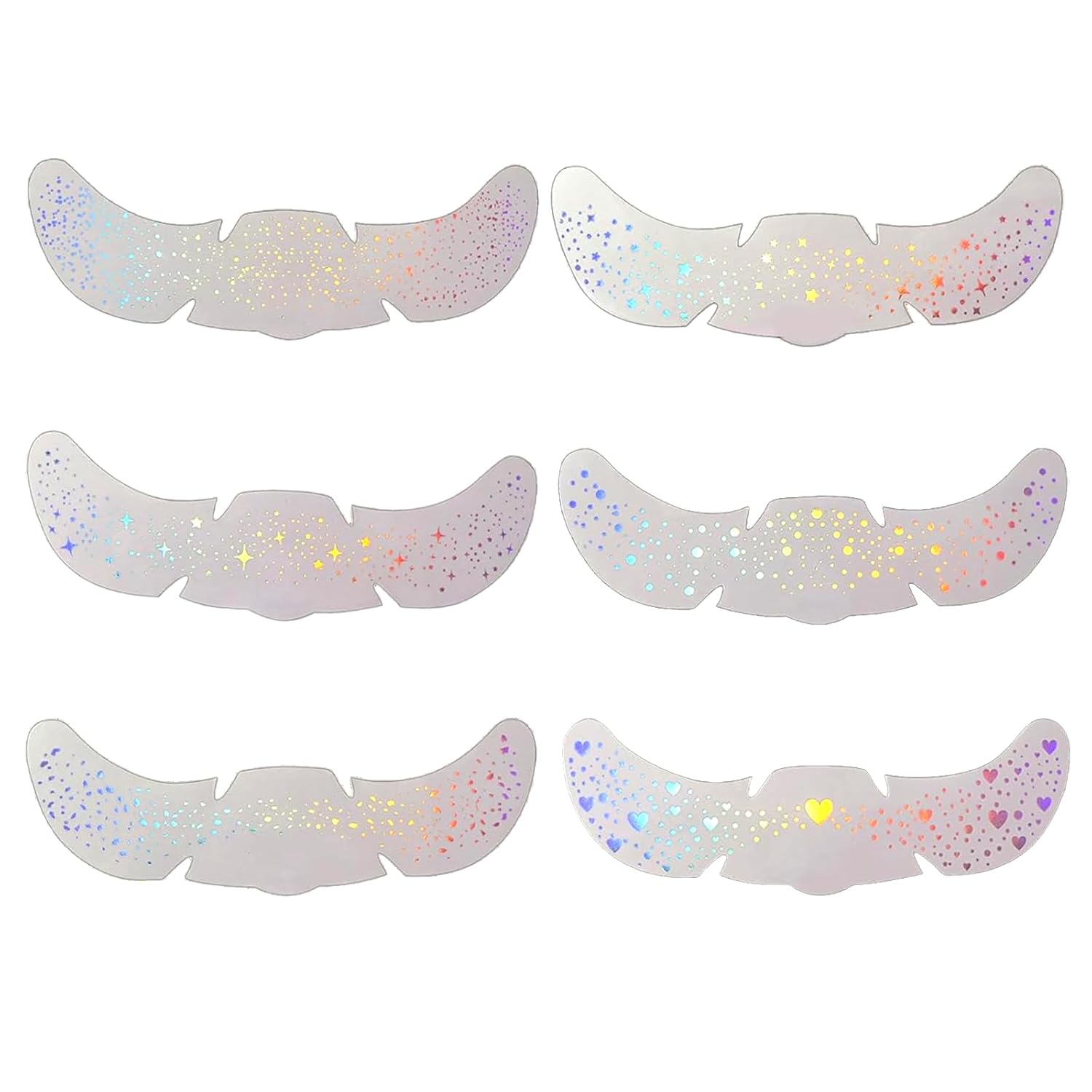 6Pack Holographic Multichrome Glitter Freckles Face Tattoo,Waterproof Sparkle Face Glitter Makeup Patches,Temporary Faces Speckles for Women.