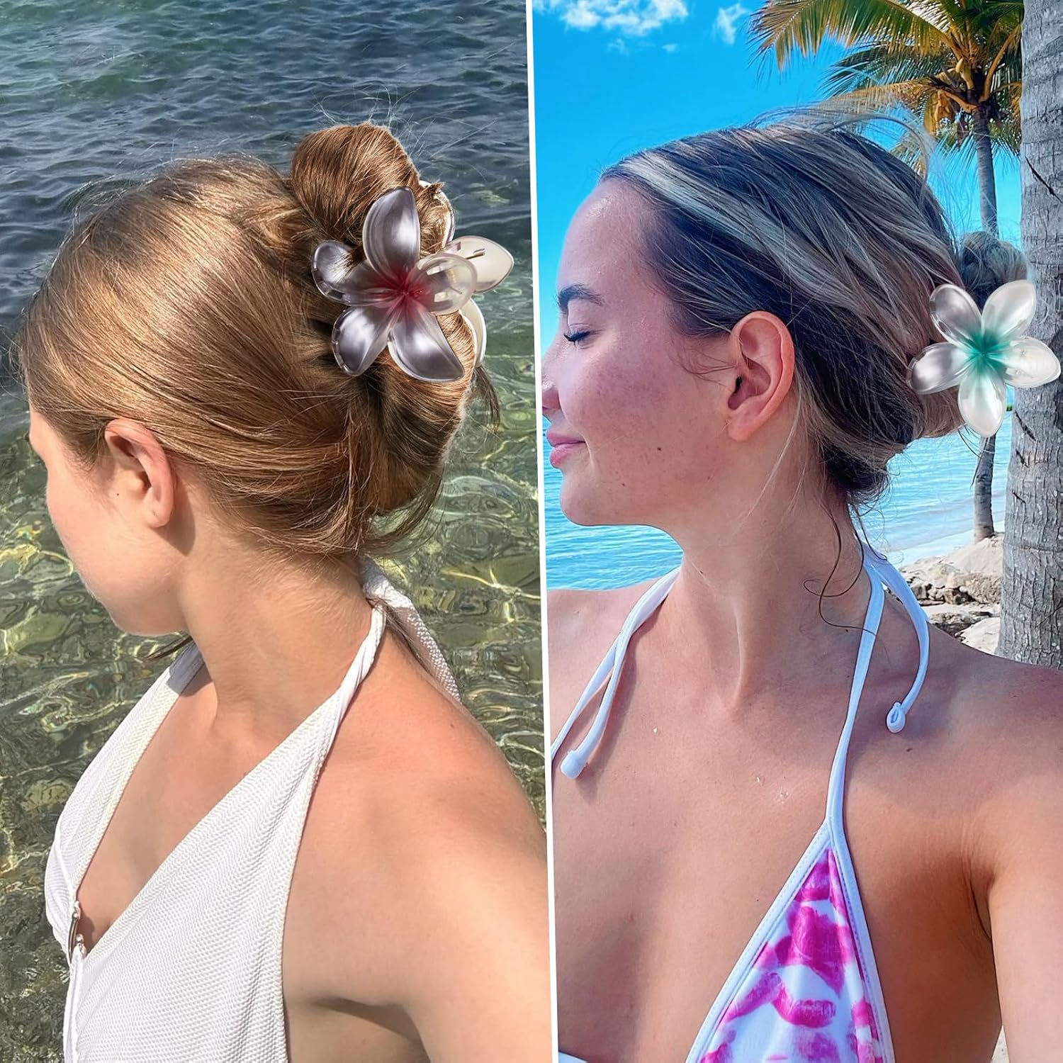 Hawaiian Flower Hair Claw Clips for Women, Plumeria Hair Clips, Cute Summer Beach Hair Accessories