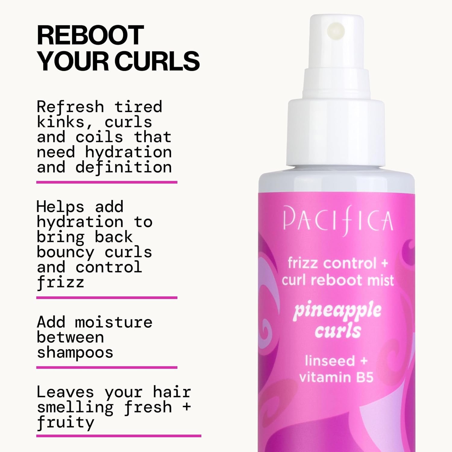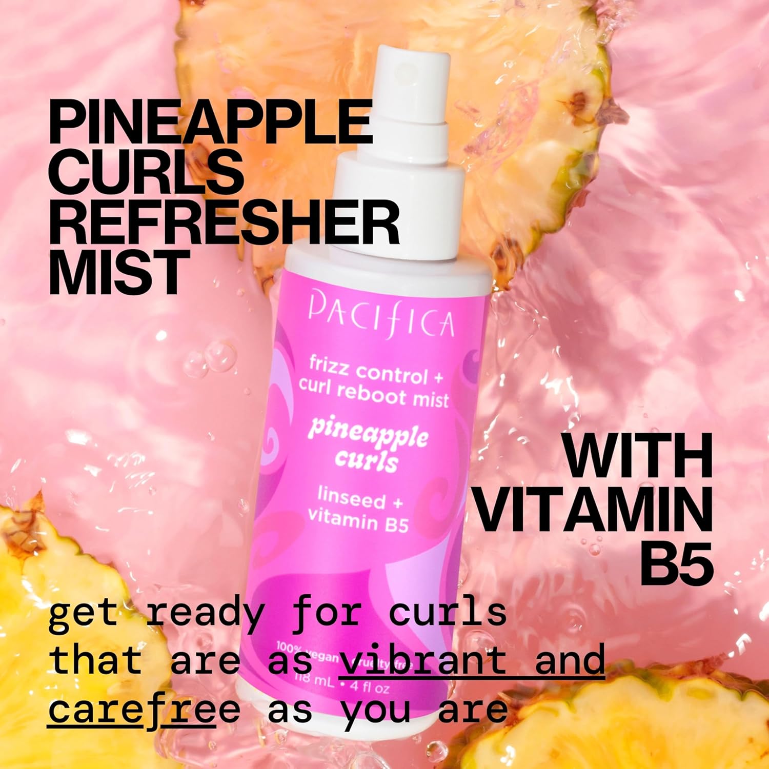 Pacifica Beauty Pineapple Curls Curl Cream & Refresher Mist Set for Curly & Coily Hair – Defining Cream + Day 2 Curl Refresh Spray, Enhances Definition, Tames Frizz, Vegan & Cruelty-Free