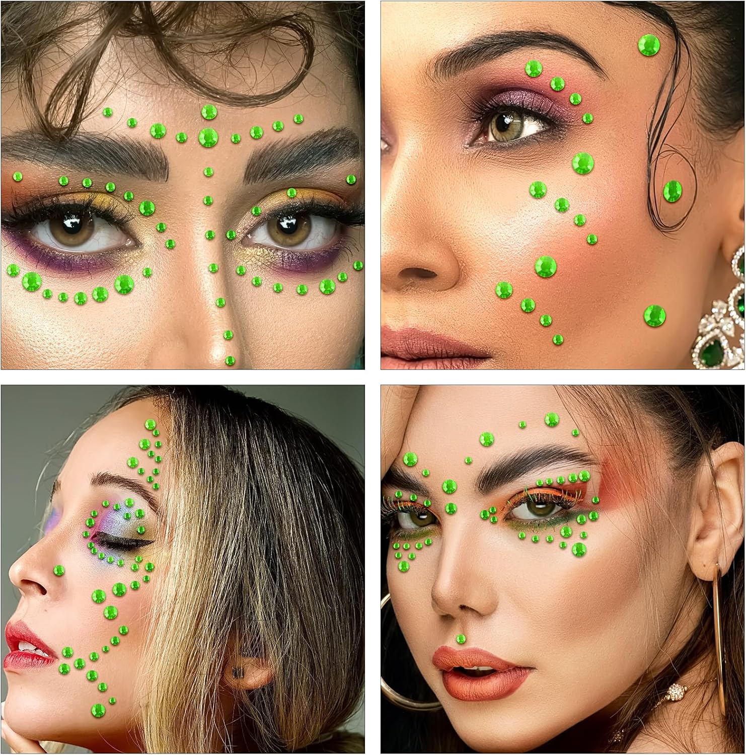 591pcs Face Gems Hair Gems Pearls, Self-Adhesive Face Jewels Eye Rhinestones 3/4/5/6/8 mm Face Gem Stick on, Halloween Makeup Gems Rave Accessories for Face Eyes Body Makeup (09.Light Green)