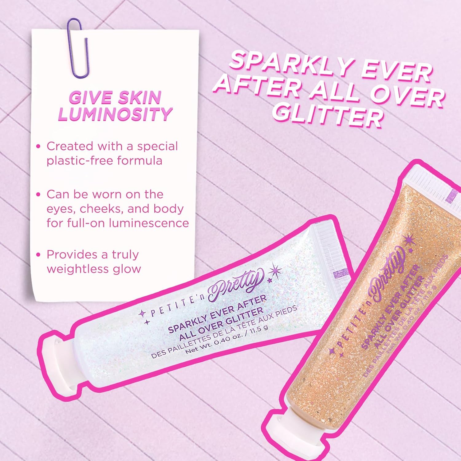 - All-Over Glitter Magic – Dazzle from head to toe with the Sparkly Ever After All- Over Glitter! Lightweight, multi-dimensional shimmer for face, eyes, lips, cheeks, and body.