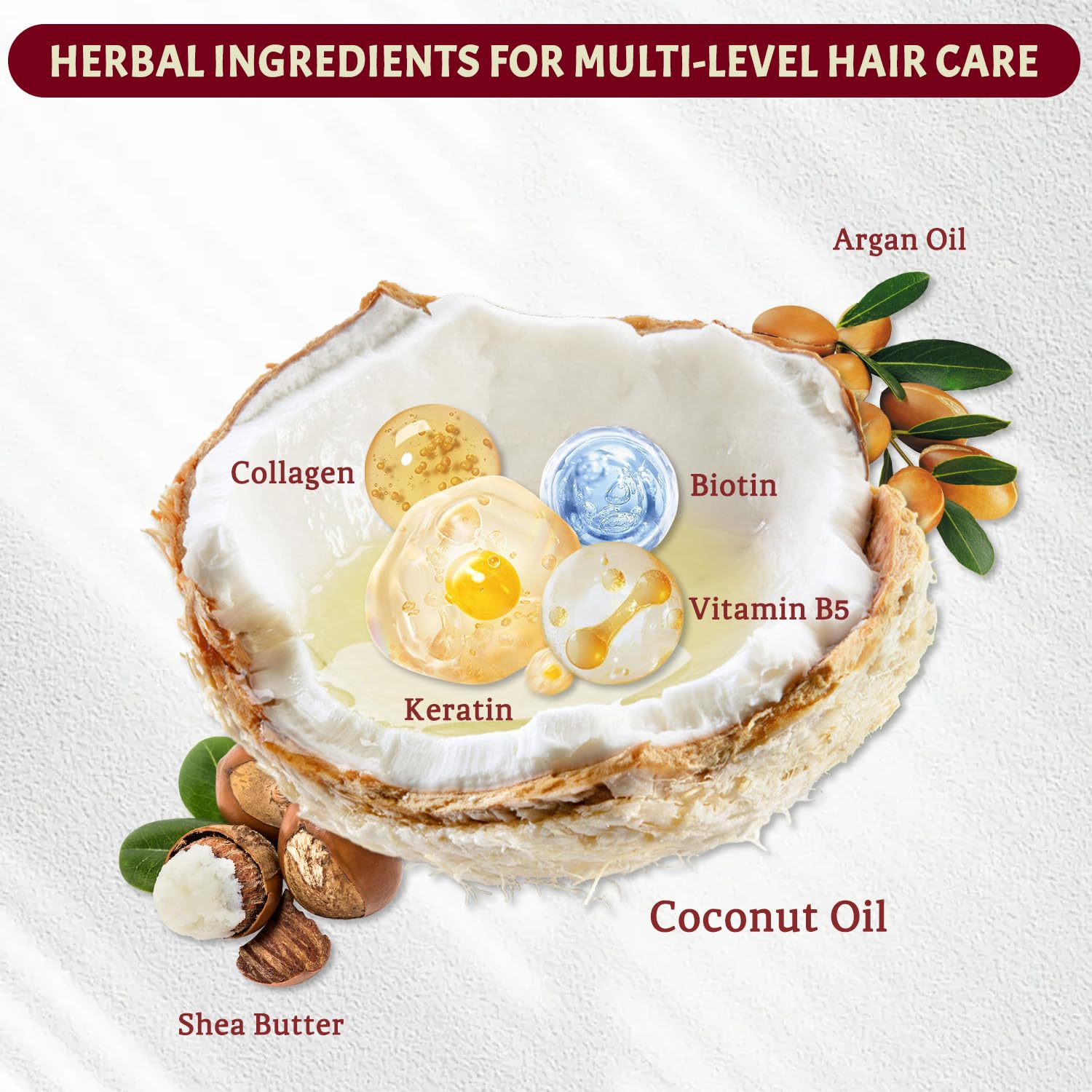 - Deep Repair for Damaged Hair: Enriched with Keratin, Biotin, Shea Butter, and Coconut Oil, this hair mask deeply repairs dry and damaged hair, providing nourishment to restore hair health and shine.