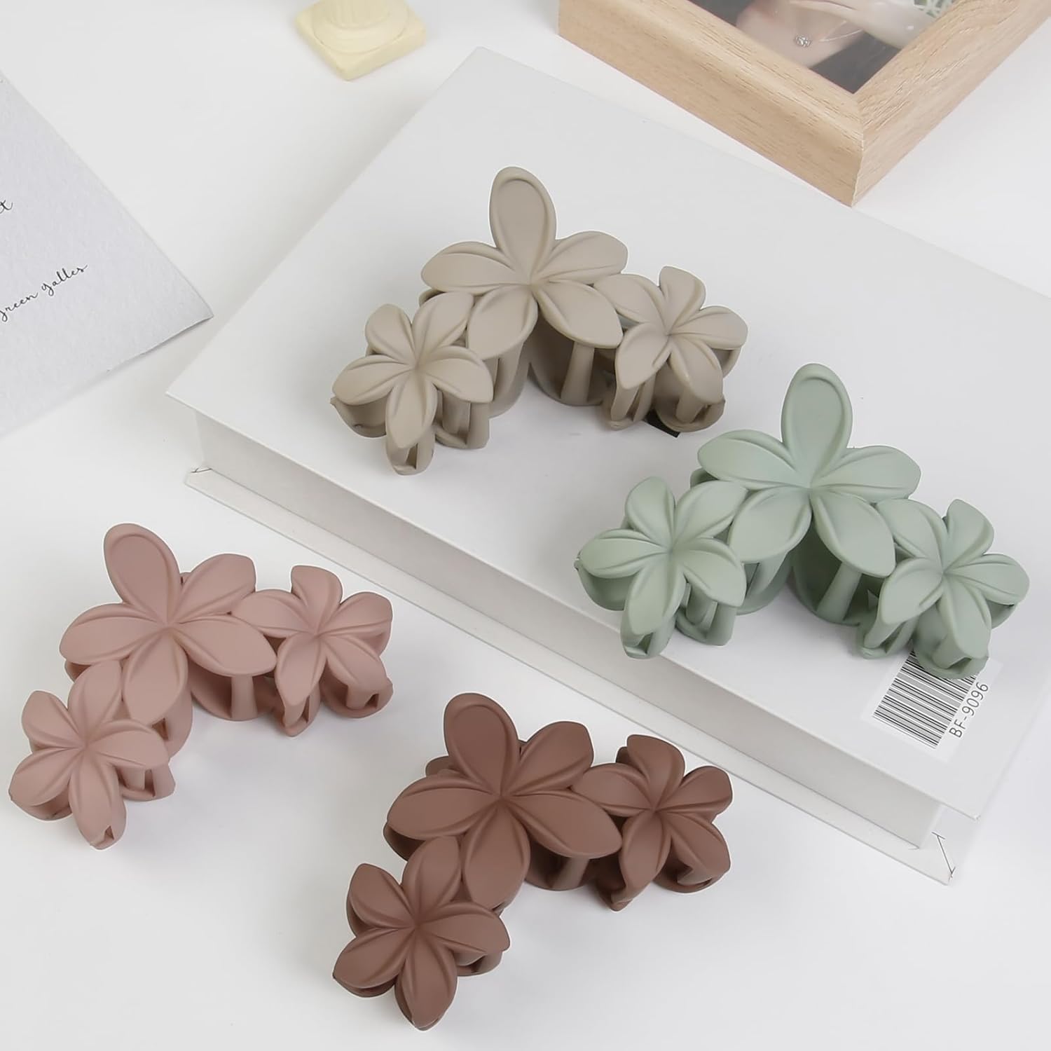 Hawaiian Plumeria Flower Hair Clips for Women Large Matte Claw Clips for Girls Non Slip Claw Clips for Thick Hair Strong Hold Beach Hair Accessories 4 PCS