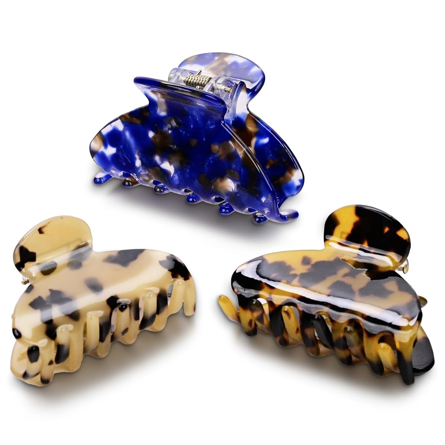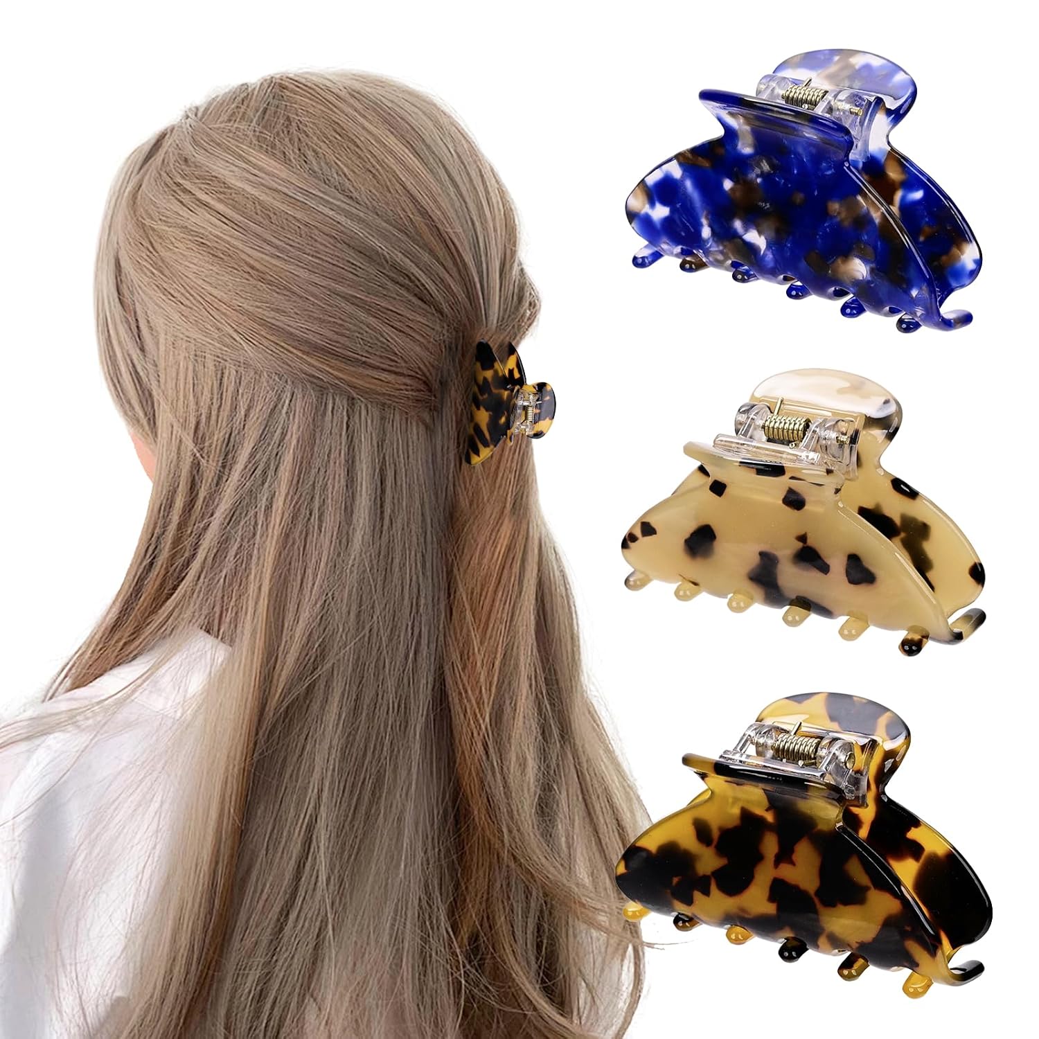 3 Pack Women's Hair Clips Set - Vintage Tortoise & Leopard Print Non-Slip Claw Clips, Celluloid Jaw Clamps for Medium Hair Hair Accessories Gift for Women
