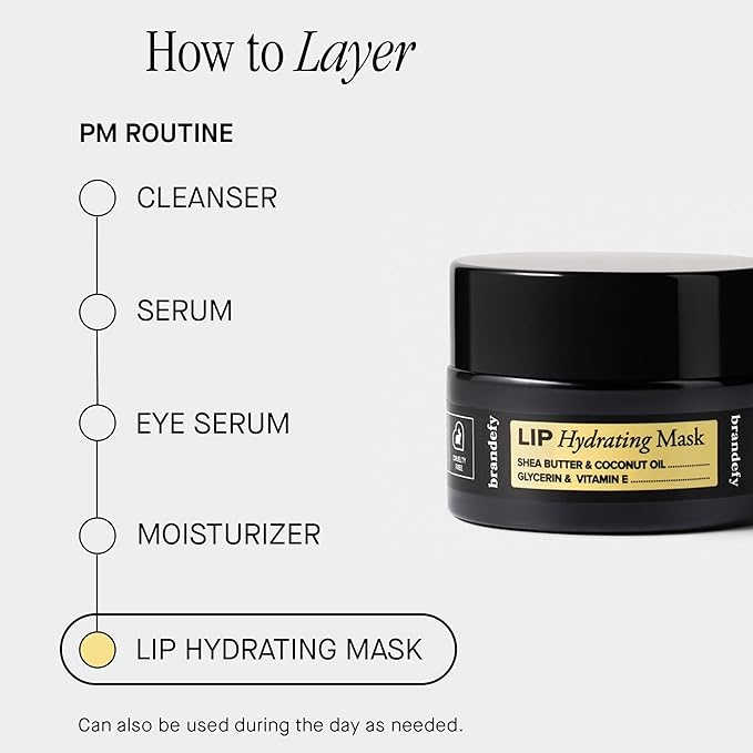 Brandefy Lip Hydrating Mask - Shea Butter and Coconut Oil, Glycerin, Vitamin E - Hydrating, Overnight Lip Mask for Dry Lips, Made in the USA (0.45 Oz)
