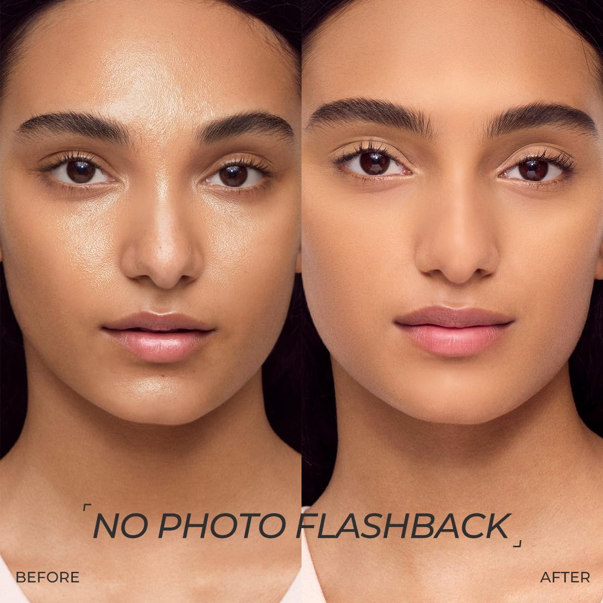 - OIL CONTROL AND NO PHOTO FLAHBACK COMPACT POWDER. Experience flawless, natural-looking skin with this innovative, talc-free setting powder. Enhanced with an airbrush effect, it soft-focuses imperfections and locks your makeup in place all day long. Bid farewell to unwanted shine and photo flashback, and welcome a radiant, airbrushed finish that endures through every challenge.