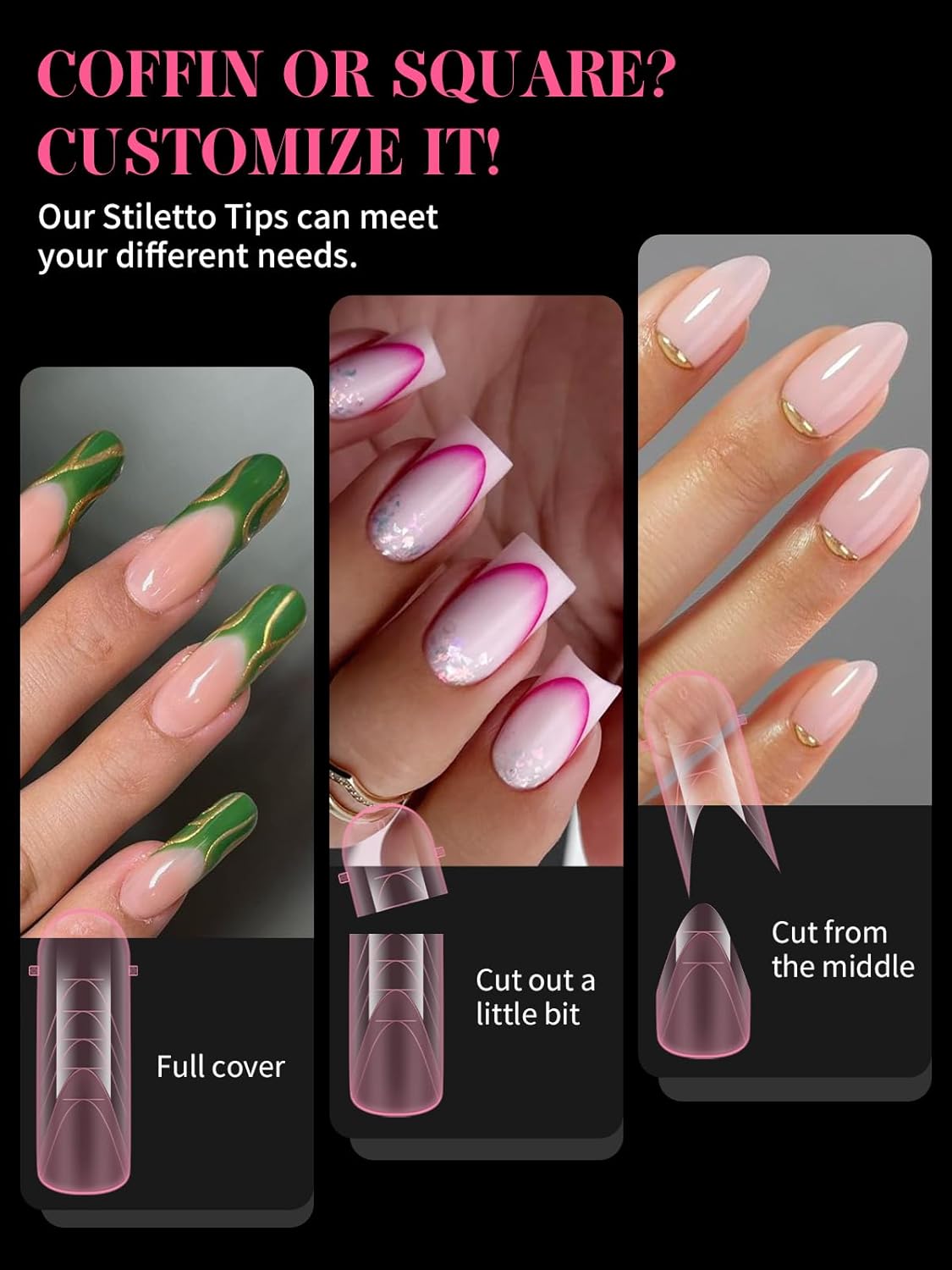 - 【Nail Form Mold with 12 Sizes】120pcs stiletto clear dual forms for poly nail gel offers 12 different nail sizes , and each size of long nail tips is separated by a small grid, a total of 12 grids, so they're easy and convenient to choose the suitable size to meet your nail's need.