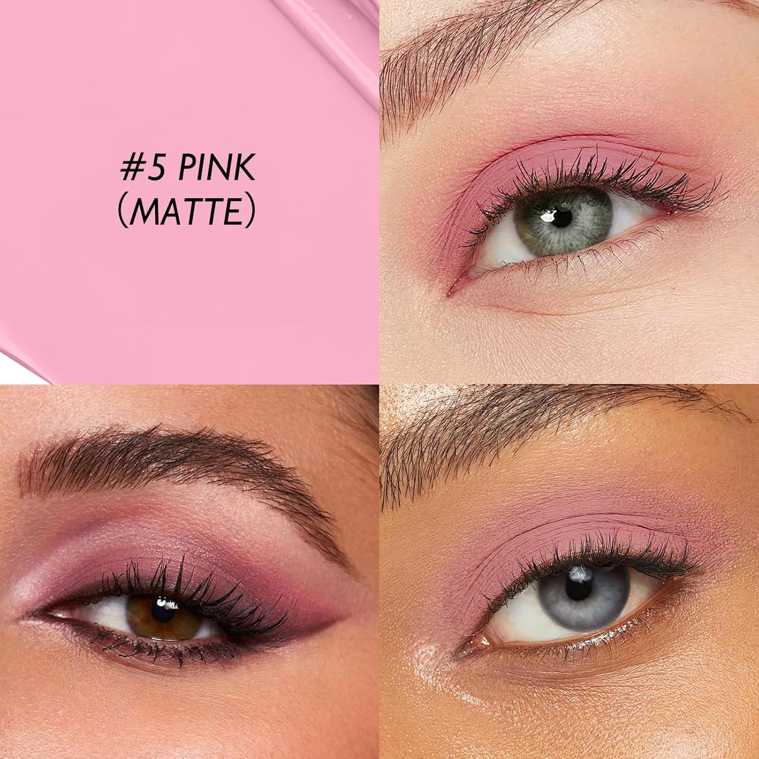 Eyeshadow Stick Matte Eye Shadow Pencil Cream to Powder Eye Brightener Crayon Long-Lasting Crease-Proof Neutral Eyeshadow Buildable & Blendable High Pigmented Eye Liner Makeup for Women, 5 PINK
