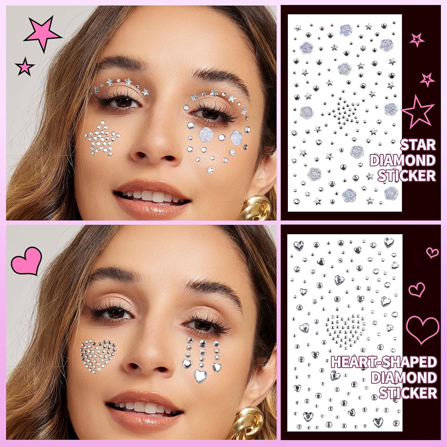 - Face Gems for Women This Y2K style face gems kit includes dreamy designs likes stars, crescent moons, butterflies, and heart - perfect face jewels for women, teens, and kids! Add a magical sparkle to your look for festivals, cosplay, or daily fun with these creative face stickers for kids and adults alike.