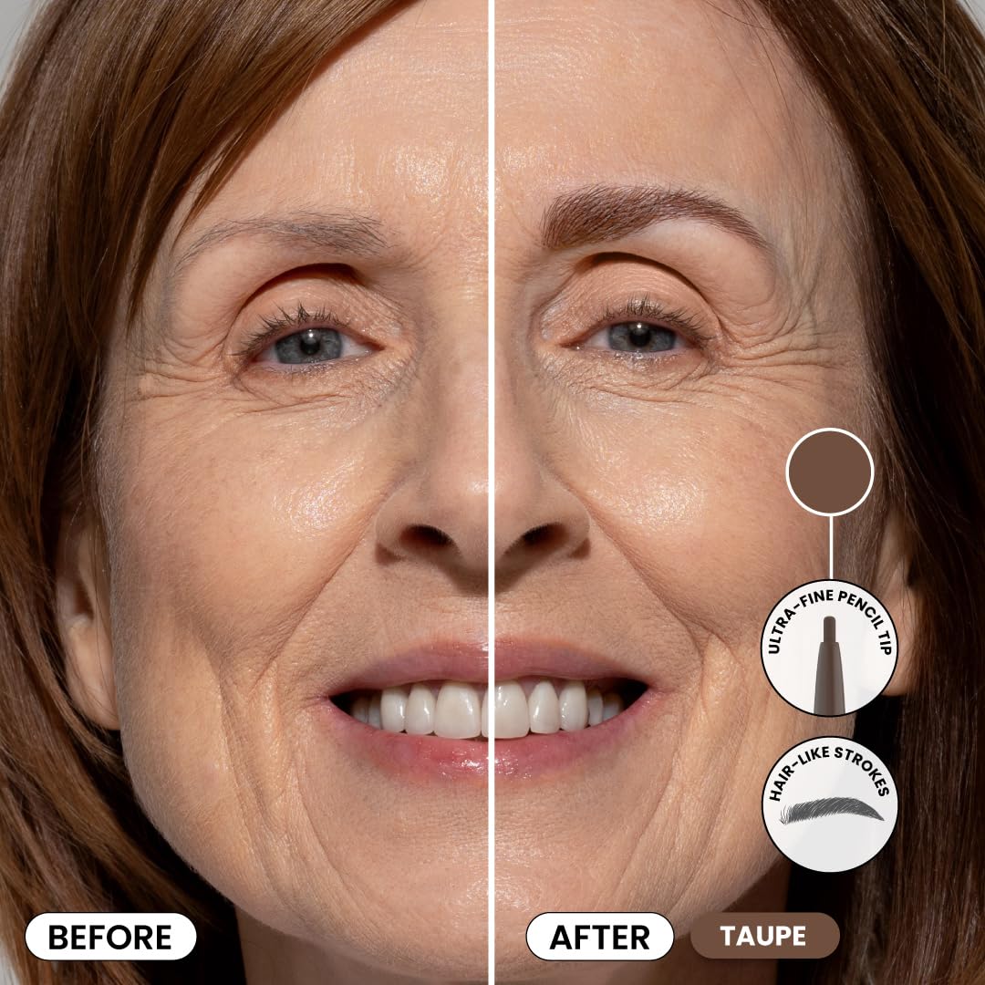 Prime Prometics PrimeBrow Pencil for Mature Women – Ultra-Precise Tip for Natural, Hair-Like Strokes – Smudge-Proof & Long-Lasting Wear – Great for Thinning, Sparse, or Graying Brows (Taupe)
