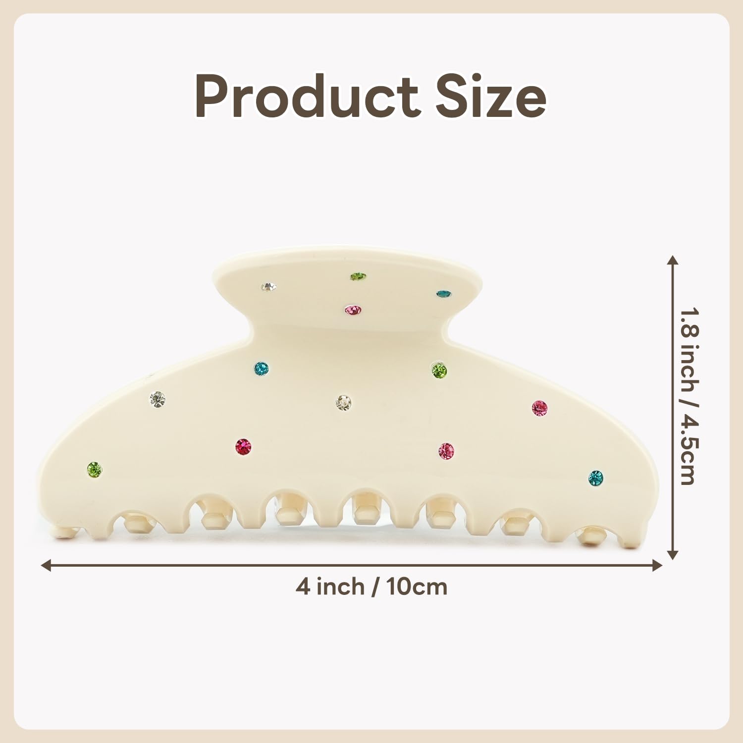 - COLORFUL RHINESTONES ACCENTS: Subtle yet sparkling, this elegant jaw clip is decorated with multicolor rhinestones that add a playful, eye-catching touch. Perfect for brightening your look—whether you're dressing up or keeping it casual.