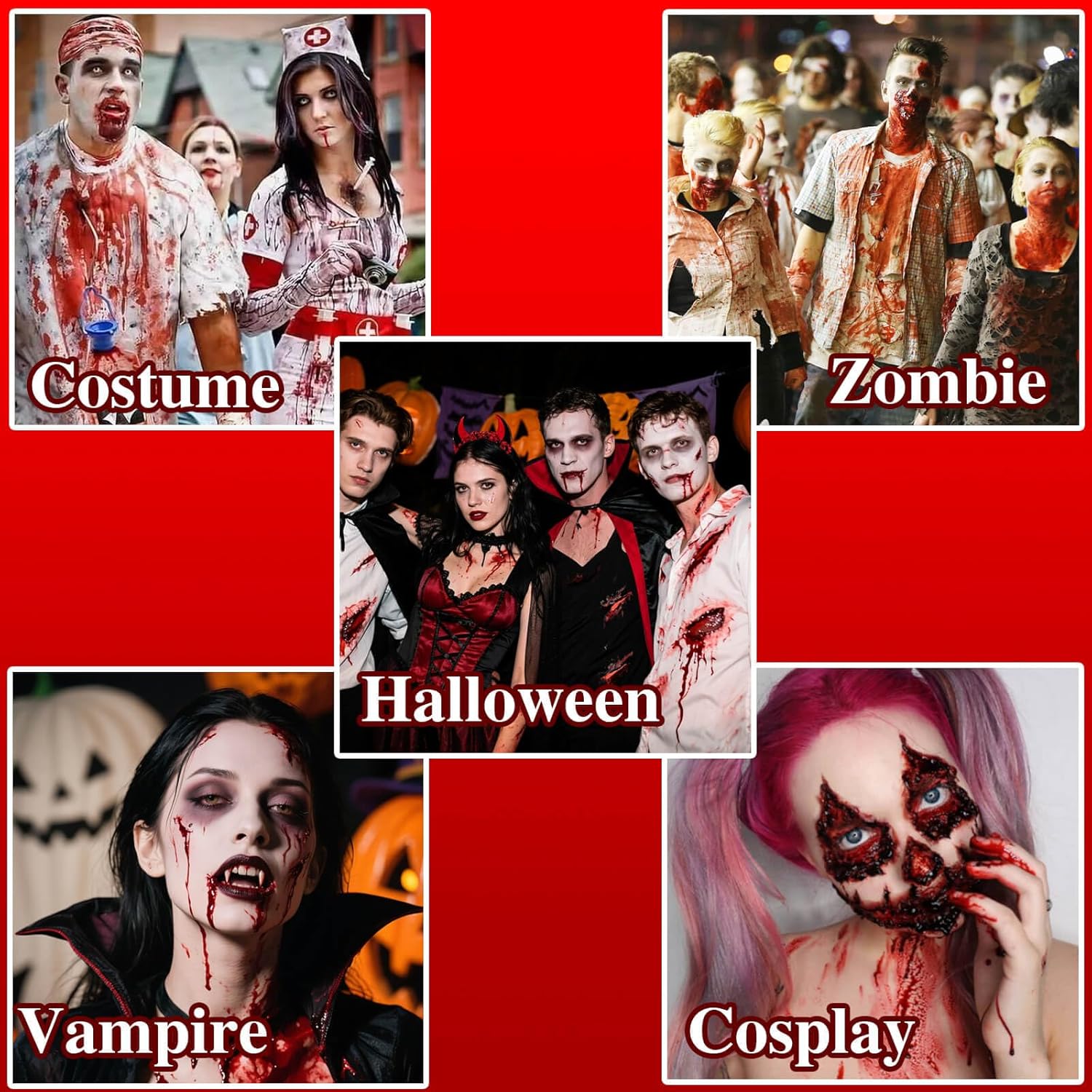 - REALISTIC WOUND EFFECTS:Designed for dramatic and lifelike injury effects, this fake blood has a thick, bright red consistency that mimics real blood. Ideal for creating cuts, burns, bites, and horror scenes with realistic visual impact