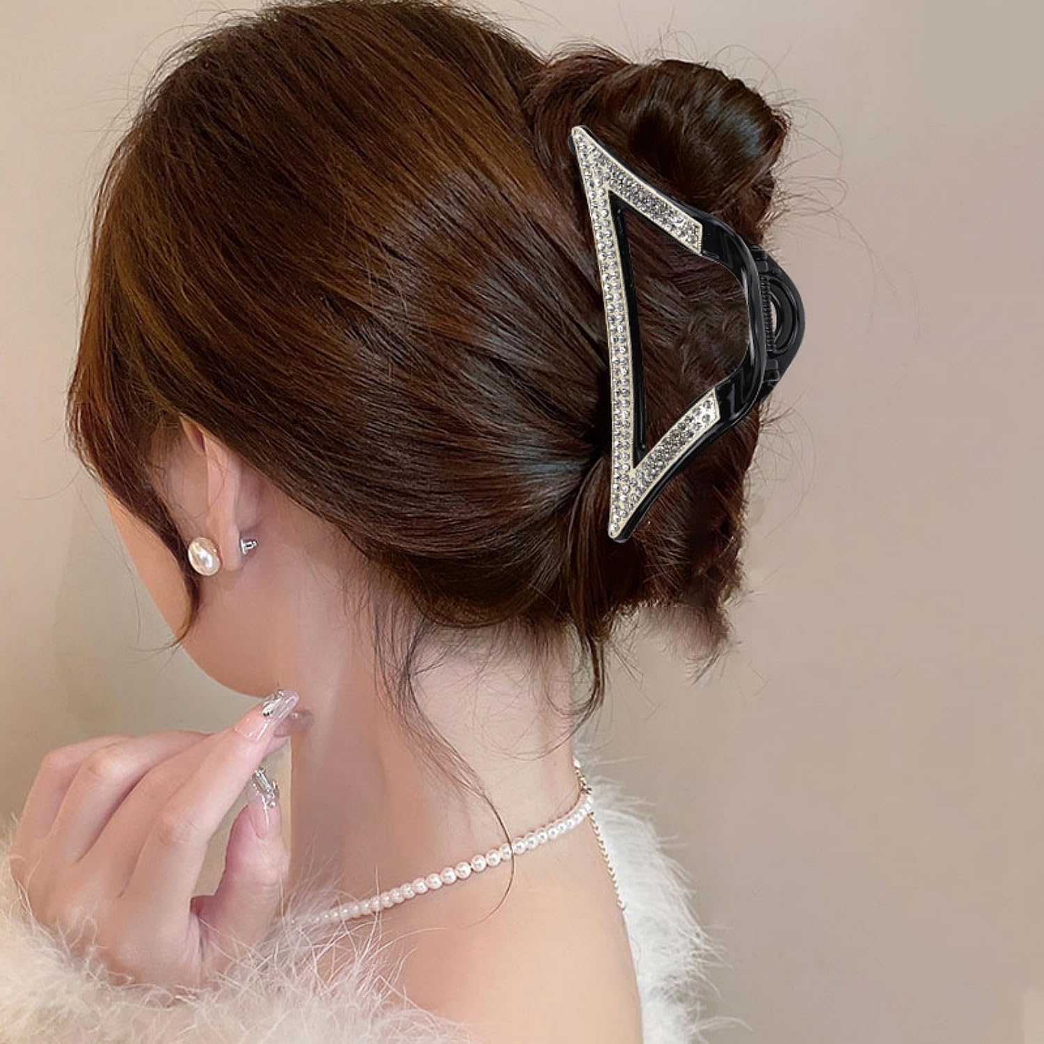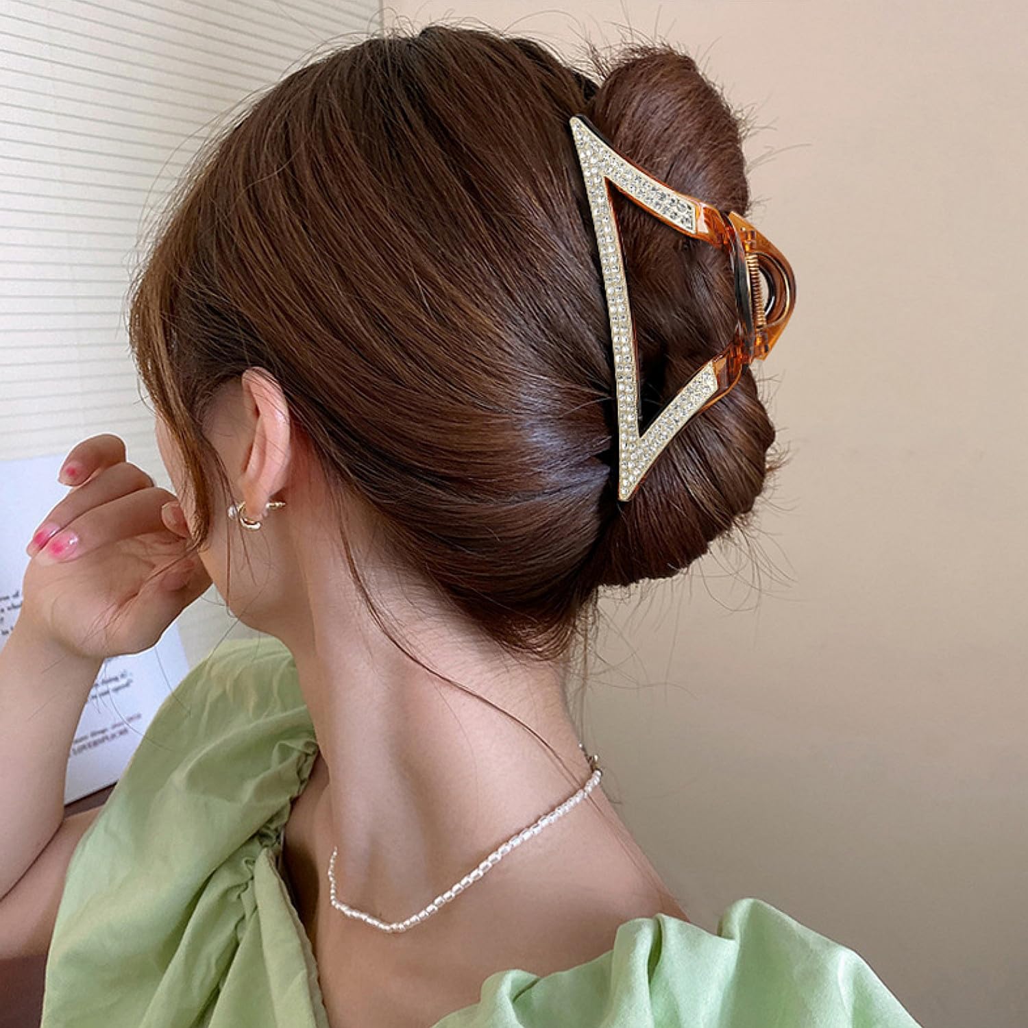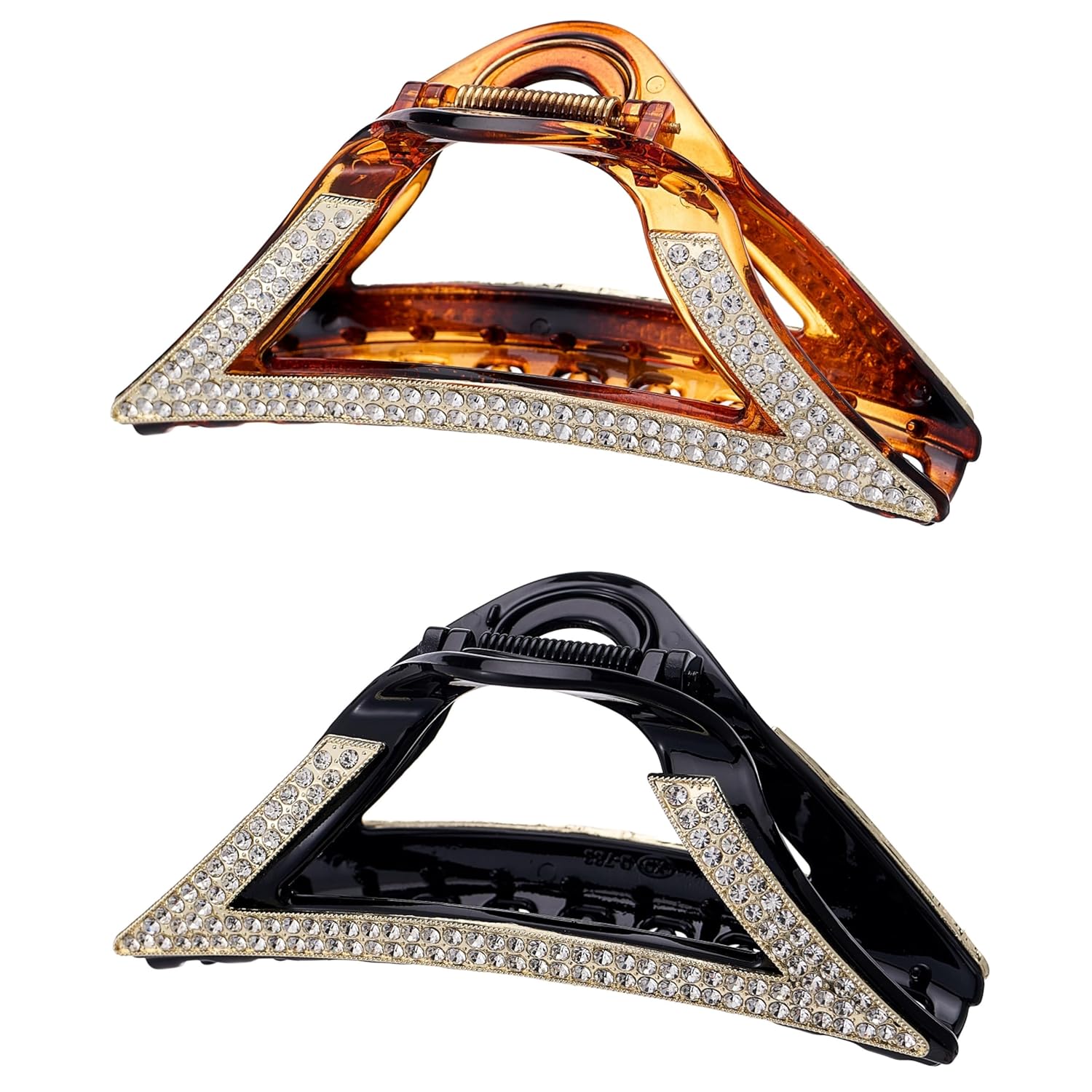 SINIDE Rhinestone Hair Clips, Triangle Crystal Claw Clips Nonslip Acrylic Metal Jaw Clip for Thick Long Hair, Fashion Elegant Clamps Accessories for Women Strong Hold Barrette for Styling (2 Pack)