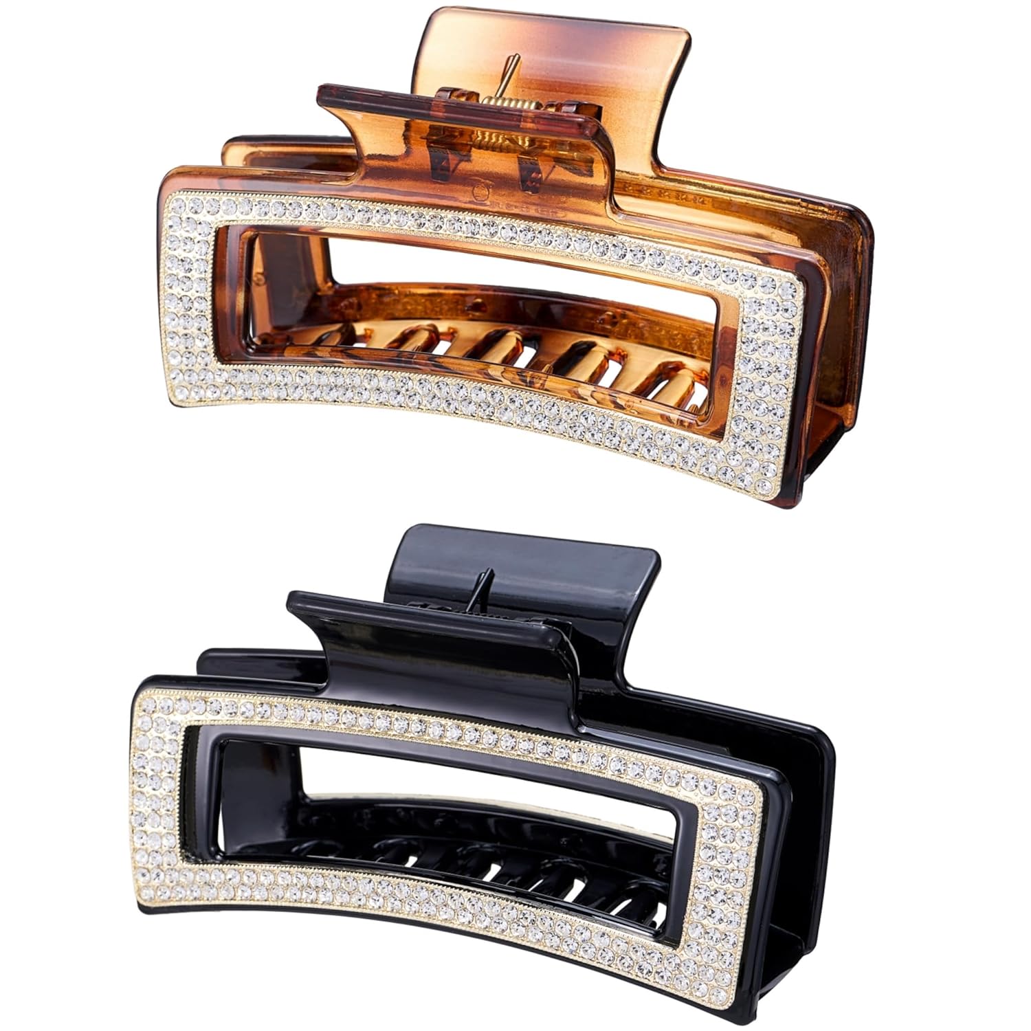 SINIDE Rhinestone Hair Claw Clips, Square Crystal Jaw Clip Nonslip Acrylic Claw Clips for Thick Long Hair, Fashion Elegant Clamps Accessories for Women Ladies Strong Hold Barrette for Styling (2 Pack)