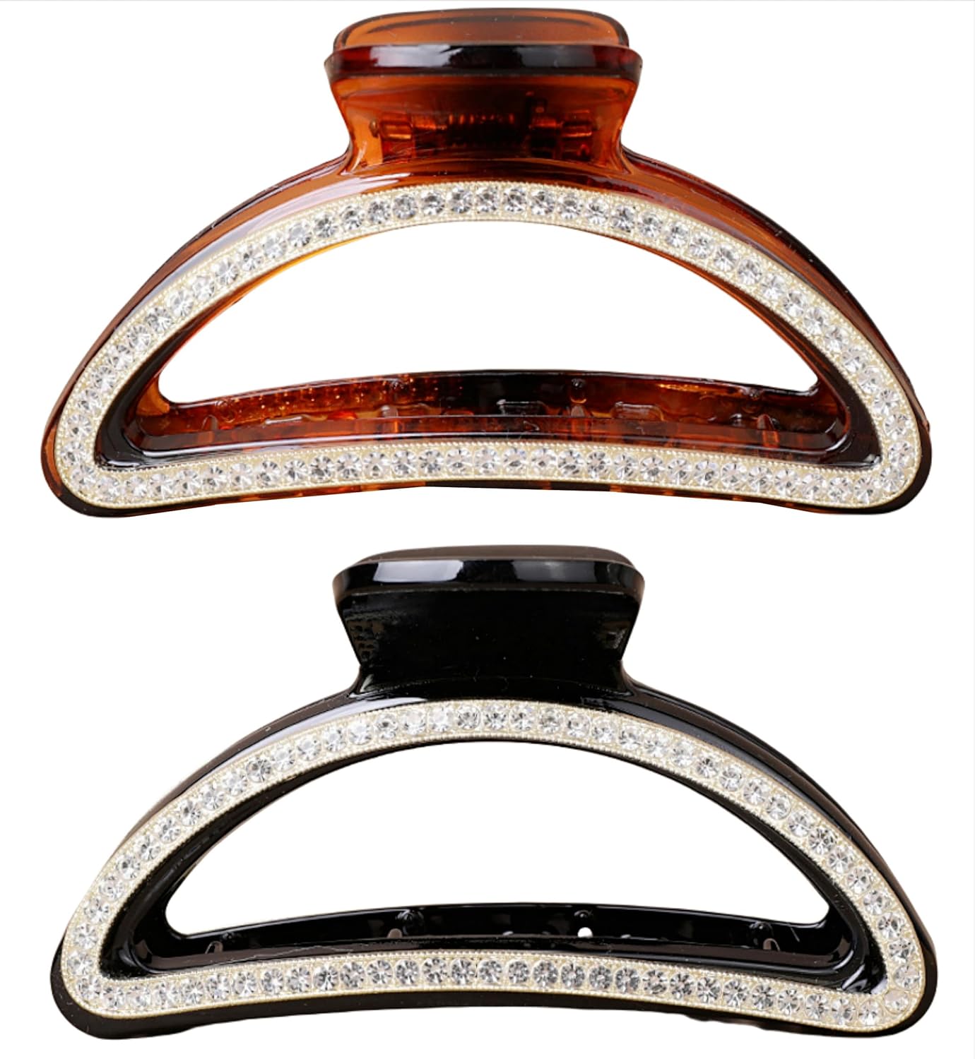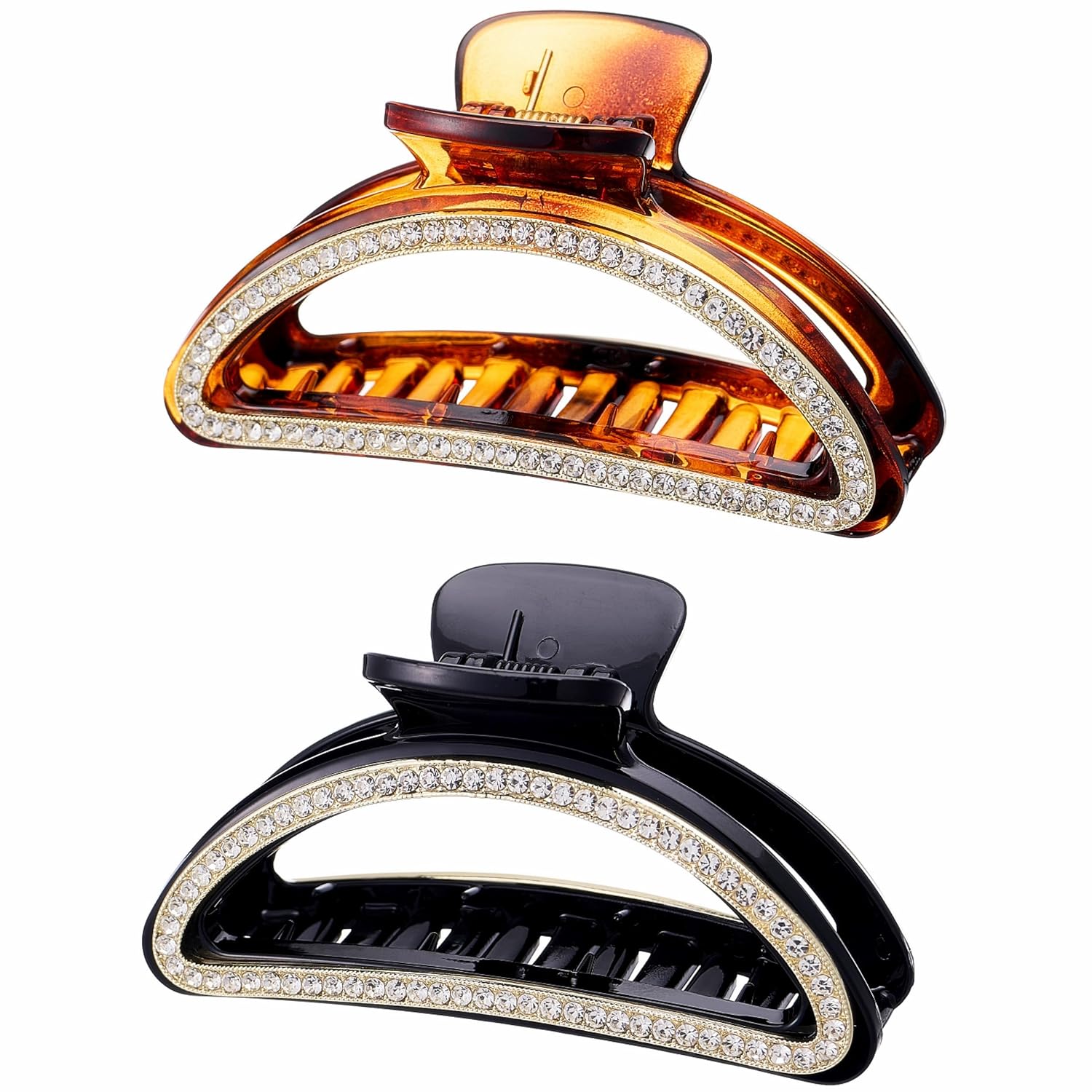 SINIDE Crystal Hair Clips, Semicircle Rhinestone Claw Clips Nonslip Acrylic Jaw Clip for Thin Long Hair, Fashion Elegant Clamps Accessories for Women Ladies Strong Hold Barrette for Styling (2 Pack)