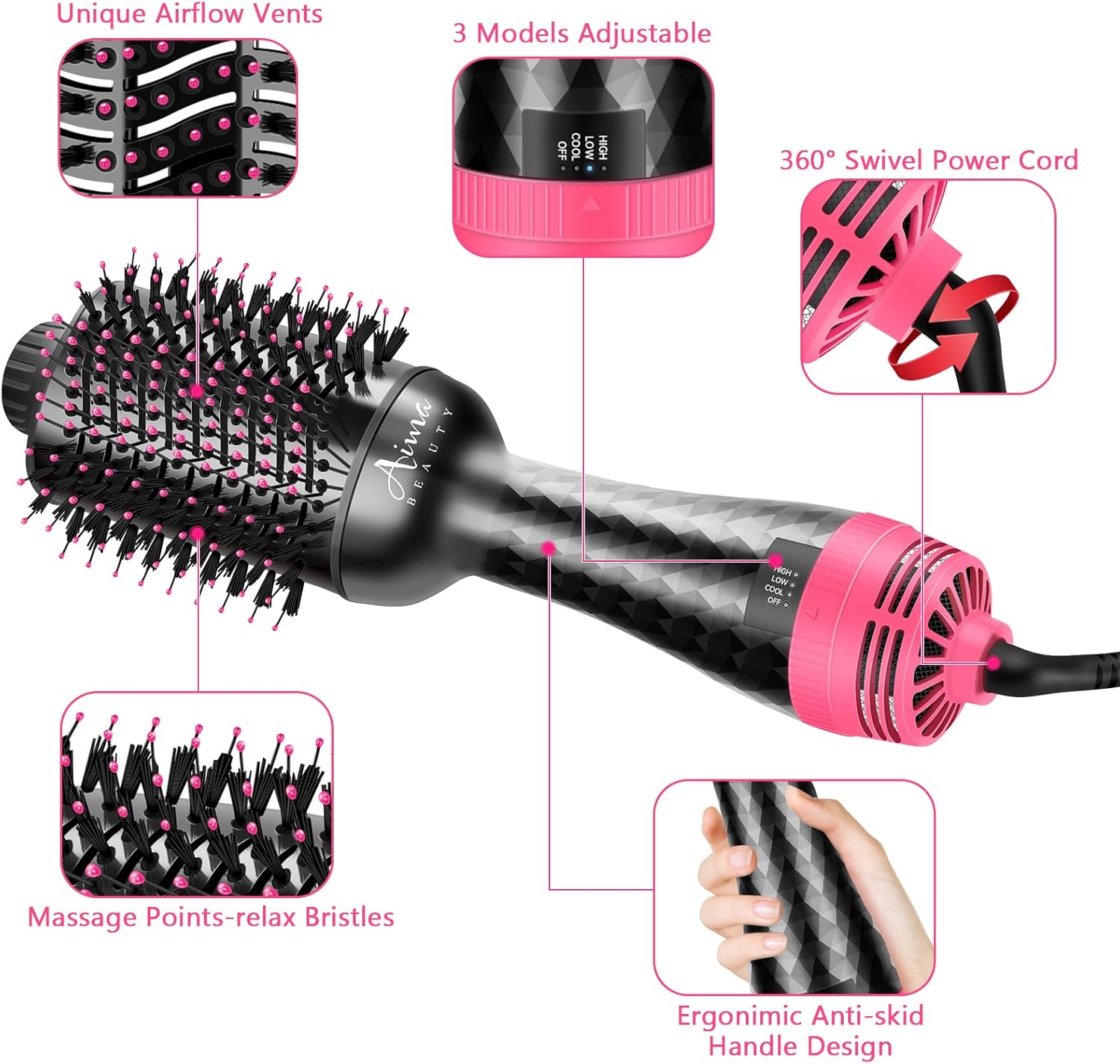 - ALL-IN-ONE FUNCTION BRUSH: Do you know how it can be tricky to hold a blow dryer in one hand and use your brush to style your hair with the other? Aima Beauty hot air brushes aim to make that how help process easier and easier. They are essentially 4-in-1 tools that combine the functions of a blow dryer brush, a hair straightener, and a hair curler. So our hot air brushes are great for those who change hairstyles frequently and those who need to look perfect for a special occasion