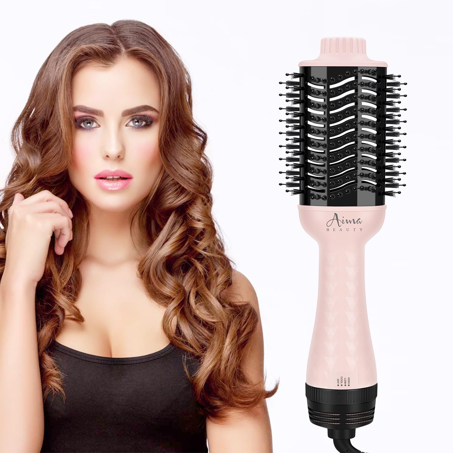 Aima Beauty One-Step Volumizer Hair Dryer Brush, 4-in-1 Upgrade Hot Air Brush for Less Frizz, More Shine, Oval Brush for Blowout, Pink