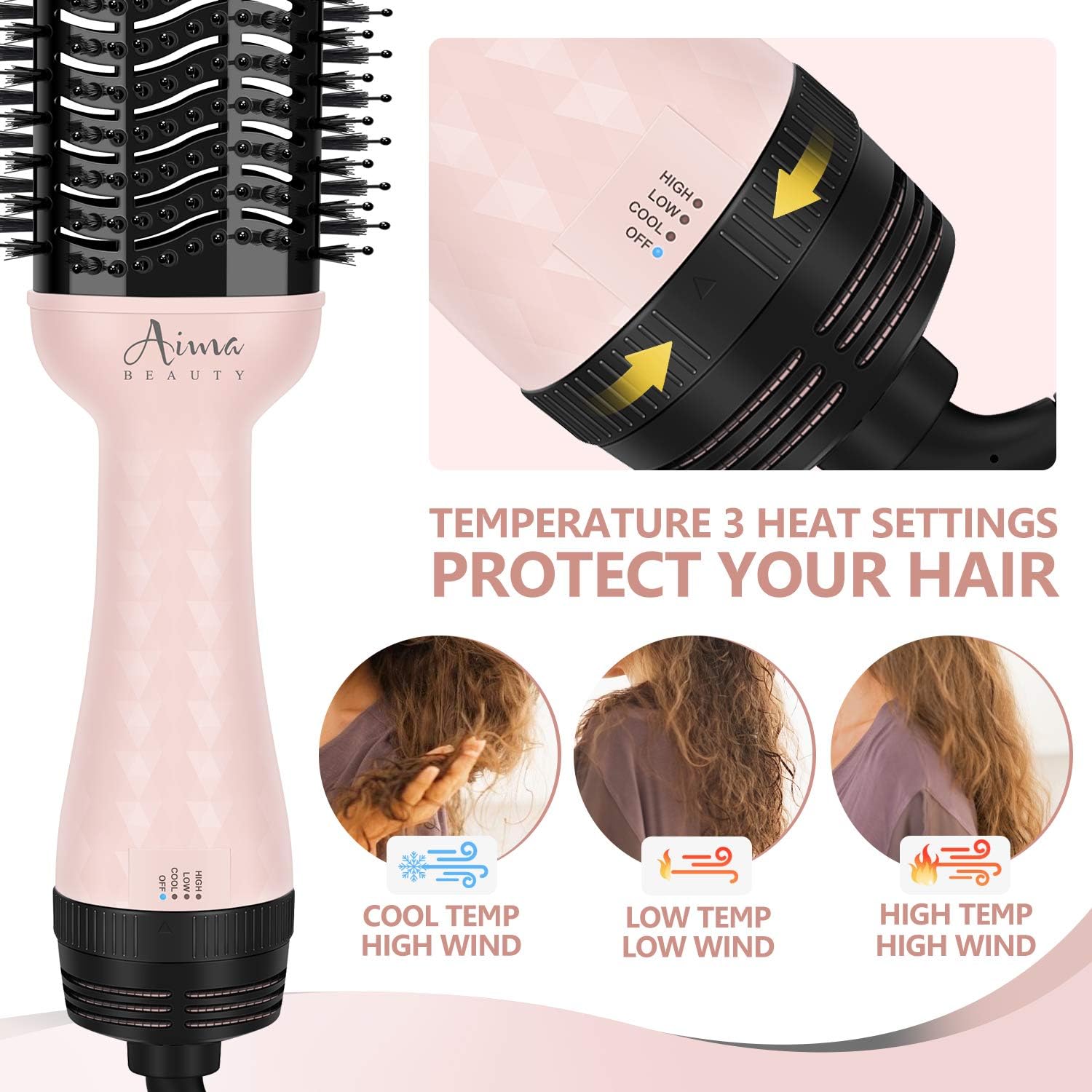 - ALL-IN-ONE FUNCTION BRUSH: Do you know how it can be tricky to hold a blow dryer in one hand and use your brush to style your hair with the other? Aima Beauty hot air brushes aim to make that how help process easier and easier. They are essentially 4-in-1 tools that combine the functions of a blow dryer brush, a hair straightener, and a hair curler. So our hot air brushes are great for those who change hairstyles frequently and those who need to look perfect for a special occasion