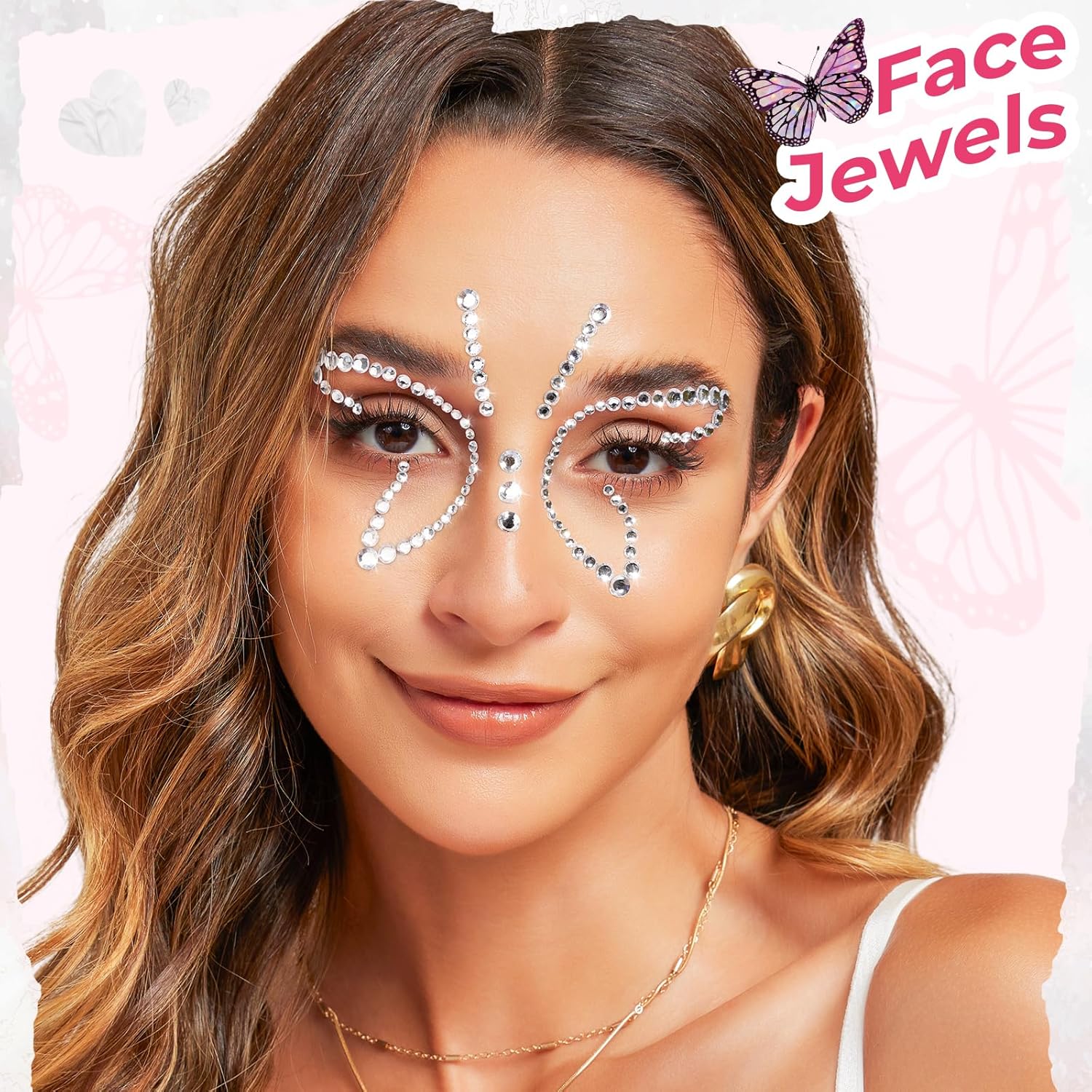 - Face Jewels Featuring bold stars, sweet hearts, and magical butterfly designs, this set brings together two of today's hottest styles: Y2K fashion and fairy-inspired fantasy. The sparkling face jewels add personality and playfulness to your look, whether you're dressing up for a concert, party, or just want to shine a little brighter in your daily routine.