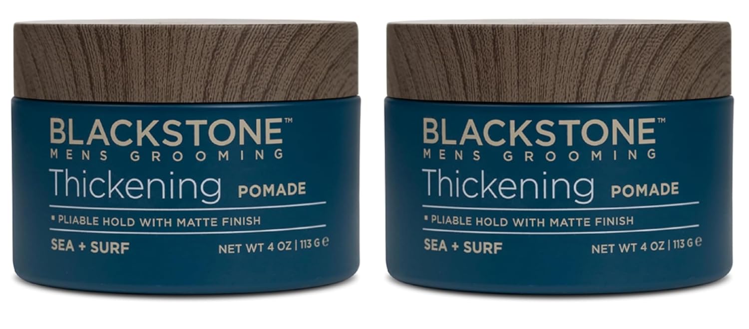 Blackstone Men's Grooming Hair Thickening Pomade - Pliable Hold with Matte Finish | Paraben & Cruelty-Free | Made in USA, Sea + Surf Scent (4 Oz, 2 Pack)