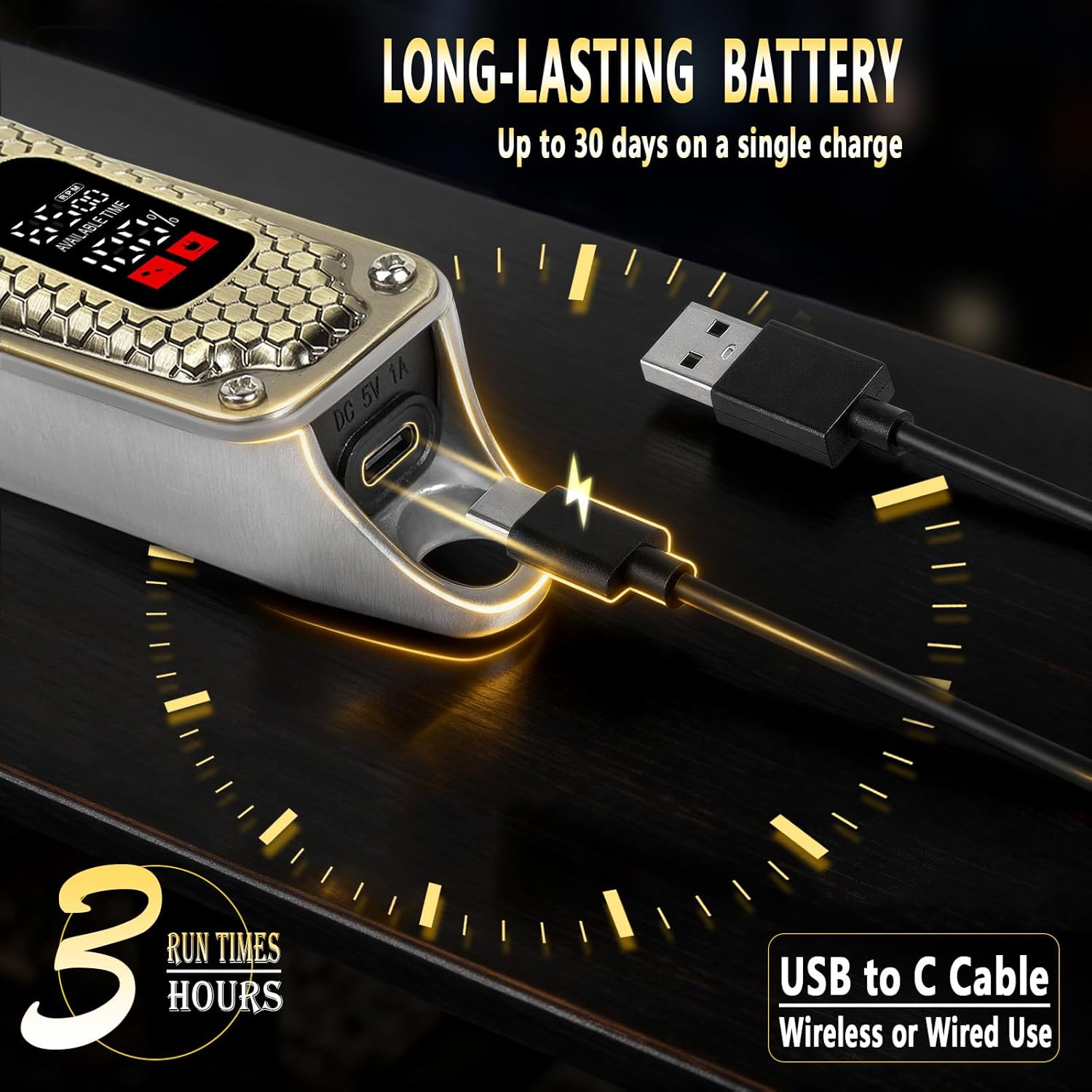 - ④ CONVENIENCE WITH PRACTICALITY - We put your service first. In the barber shop or at home, our cordless hair clippers for men keep you working at full speed efficiently, thanks to our cordless hair cutting kit being equipped with a lithium-ion battery delivering 180 min runtime on a single quick charge (quick charge time down to 1.5 hours), so you rarely need to plug in, and the high-definition LED display shows you all the information you need to control your work in real time. Plus, our haircut kit comes with 8 premium guards for various length options.