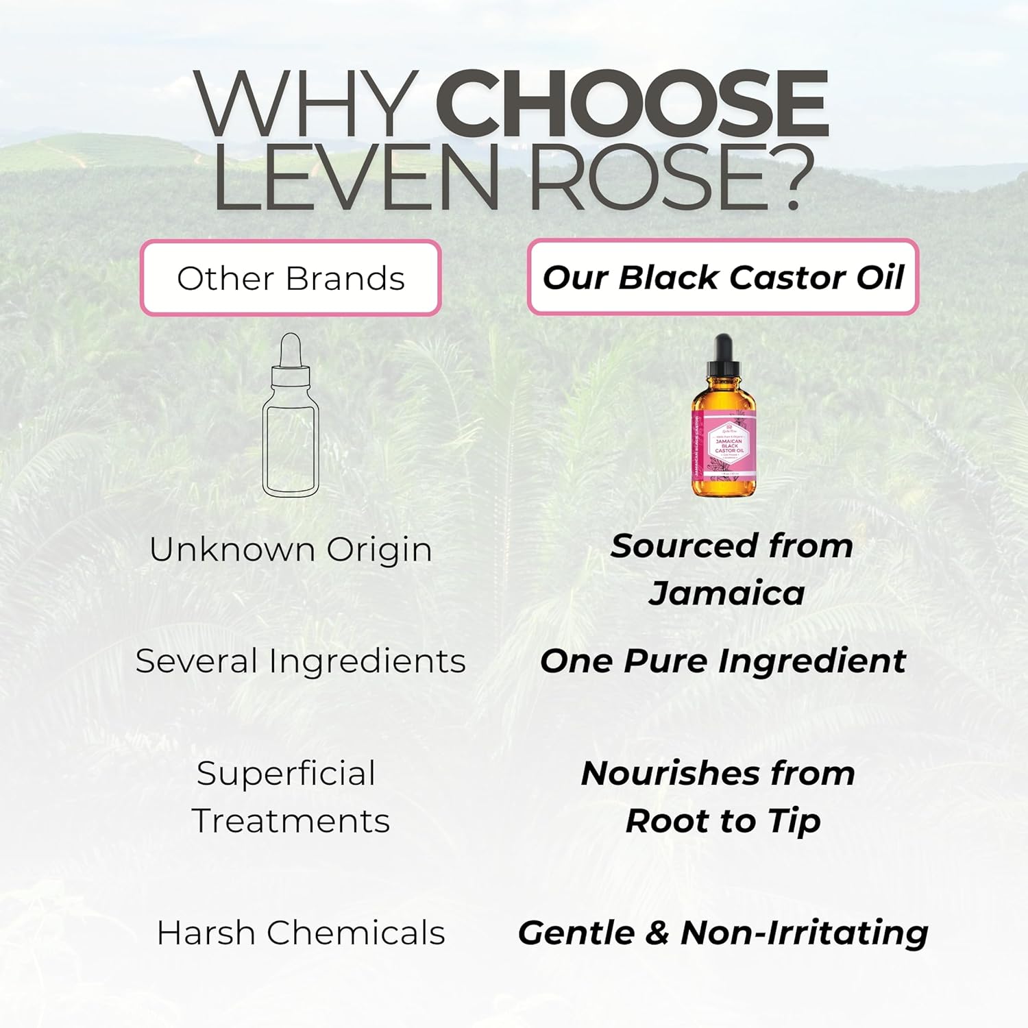 Leven Rose Organic Jamaican Black Castor Oil for Hair Growth, 100% Organic Cold Pressed Hexane Free Black Jamaican Castor Oil 1oz