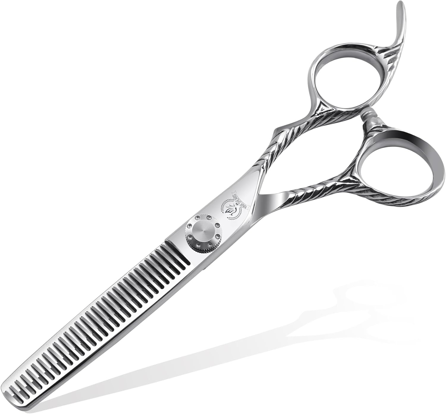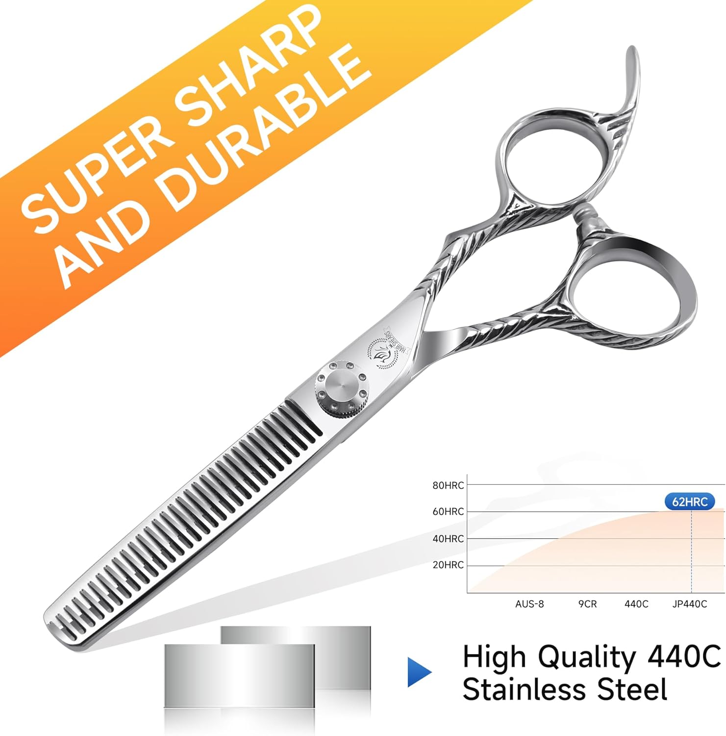 Fenice Peak Hair Thinning Scissors 6.0'' Barber Texturizing Shears 440C Thinner Hair Scissors with Engraving Handle for Salon and Home User