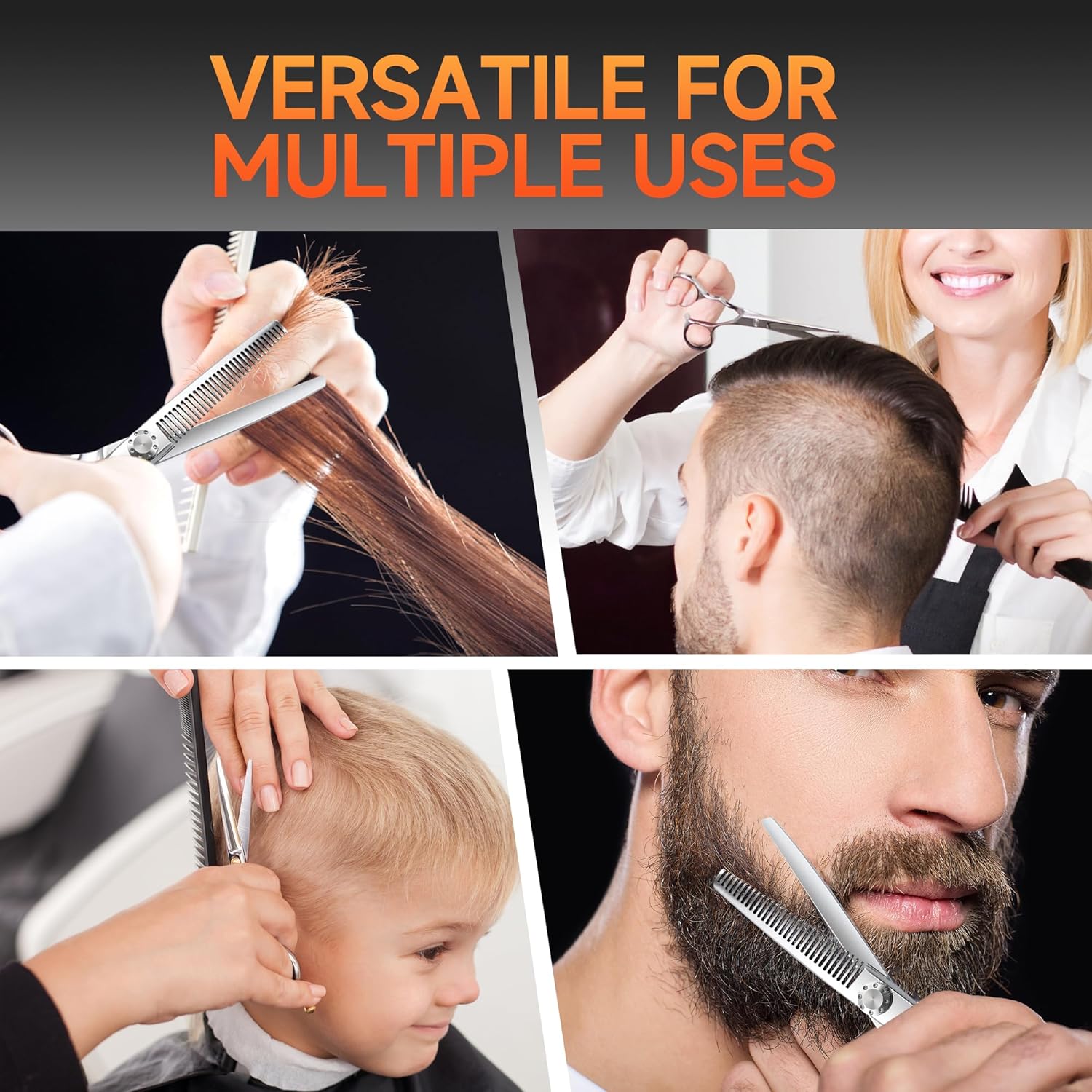 - Smooth, Gentle Thinning Action: Our barber thinning shears create seamless transitions and soft finishes without damaging or pulling the hair—perfect for detailed styling and shaping.