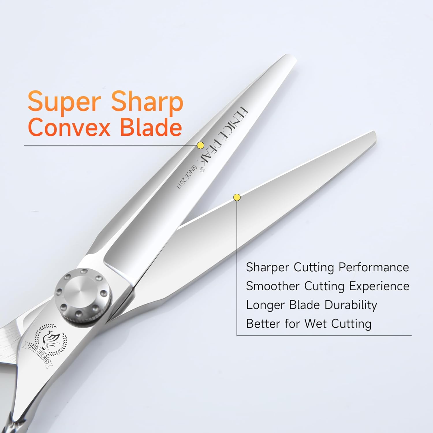 - Razor-Sharp 440C Stainless Steel Blades: Fenice Peak straight hair cutting scissors are crafted from premium 440C steel, offering ultra-sharp edges for clean, effortless cuts. Perfect for precise lines, trimming ends, and creating crisp shapes.