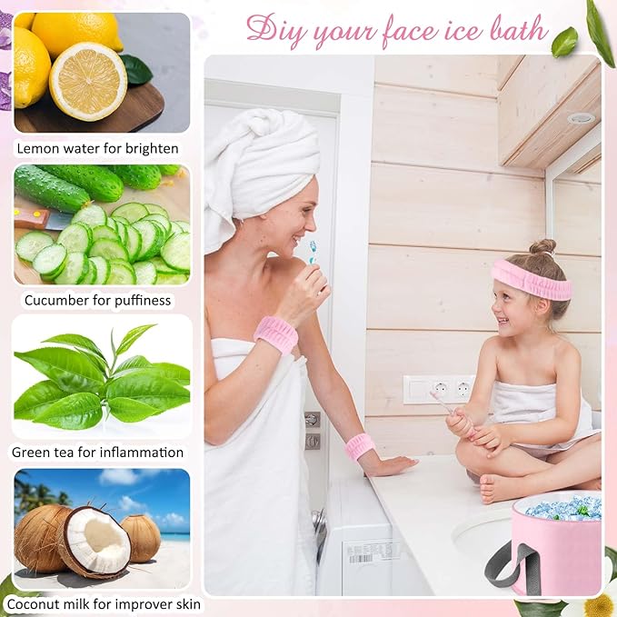 - Complete Set for Facial Care: this set includes a pink folding facial ice bath bowl measuring 7.87 x 7.87 x 11.81 inches/ 20 x 20 x 30 cm, a facial headband, and two wristbands, providing what you need to enhance your skincare routine