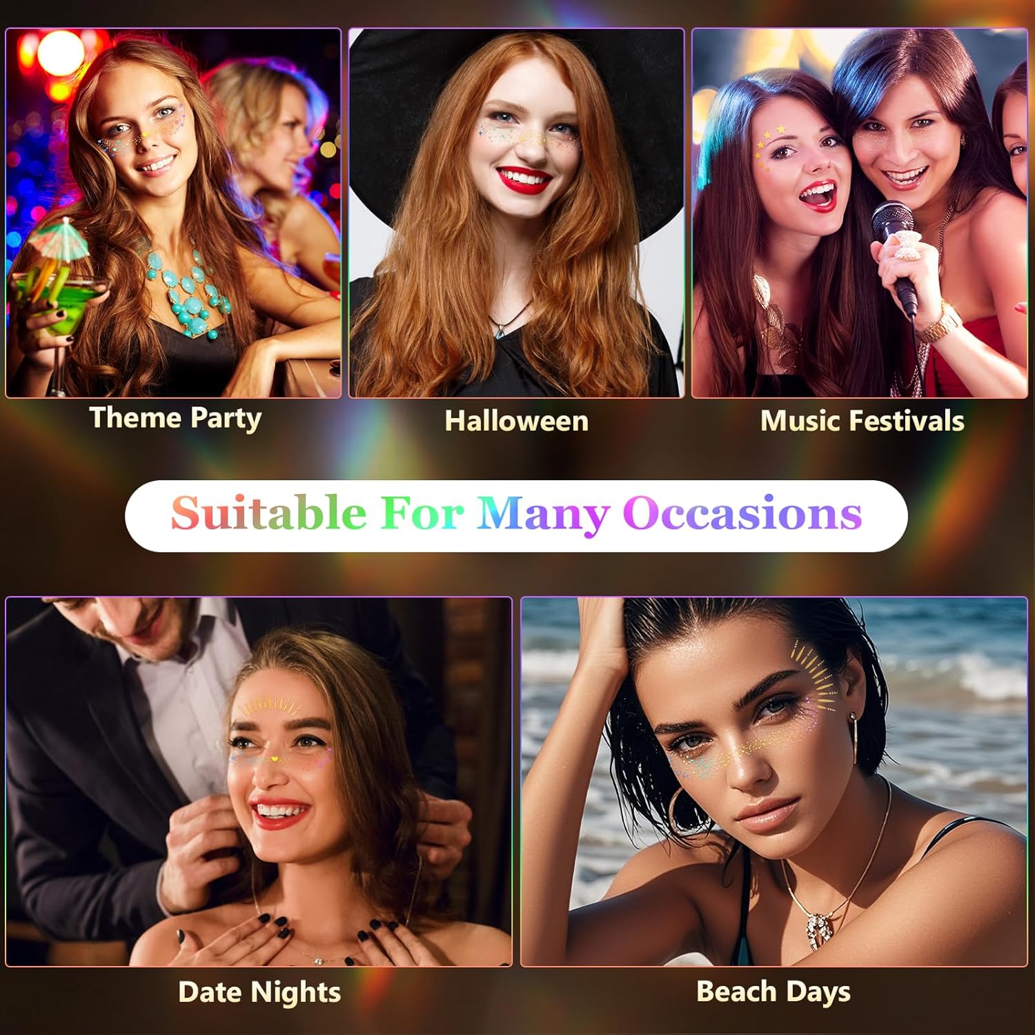 - VERSATILE FOR EVERY OCCASION: Perfect for daily glow or special events, these makeup patches glitter elevate any look. Ideal for birthdays, wedding, bachelorette parties, Halloween, Mardi Gras, concerts, beach days, pool parties, dates, discos, rave and music festivals—wherever you want to shine! Effortlessly add unique charm and confidence, whether you’re dressing up or keeping it casual. Stand out in every crowd with these shimmering, all-occasion freckles.